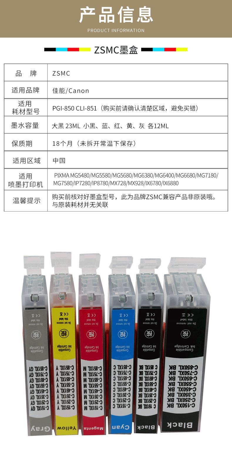 Pgi-850pgbk black, Cli-851bk small black, Cli-851c blue, Cli-851m red, Cli-851y yellow, Cli-851 gy