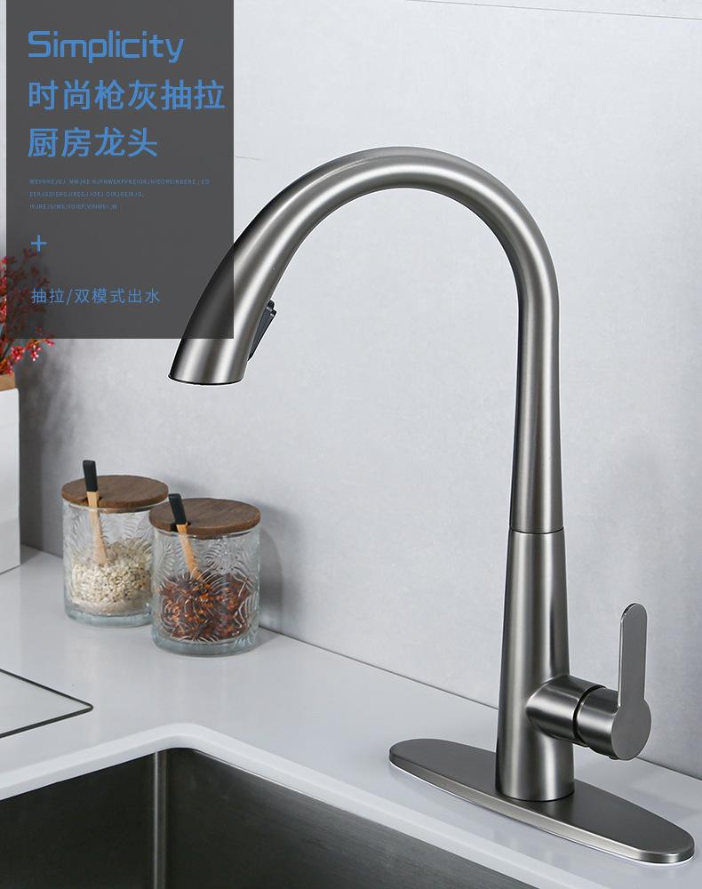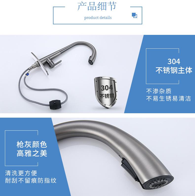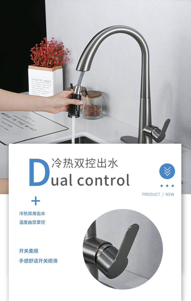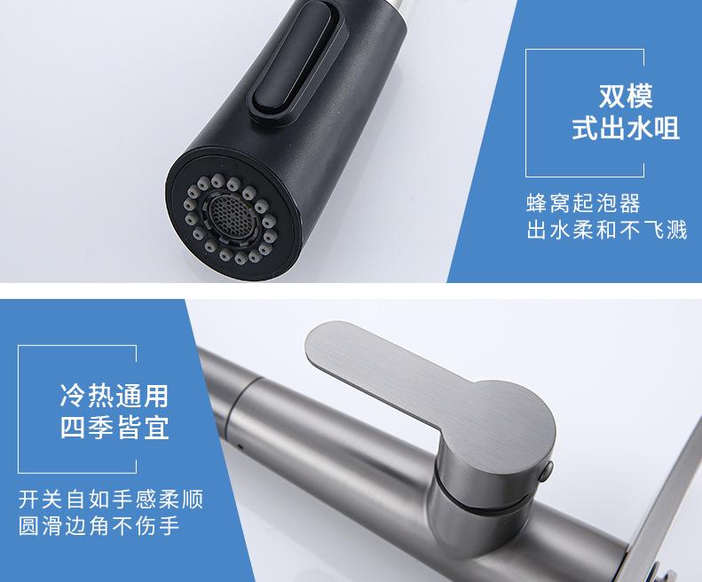 Grifo retráctil de cocina de Amazon, de modo dual, con agua caliente y fría, de acero inoxidable 304, color gris pistola, personalizado.