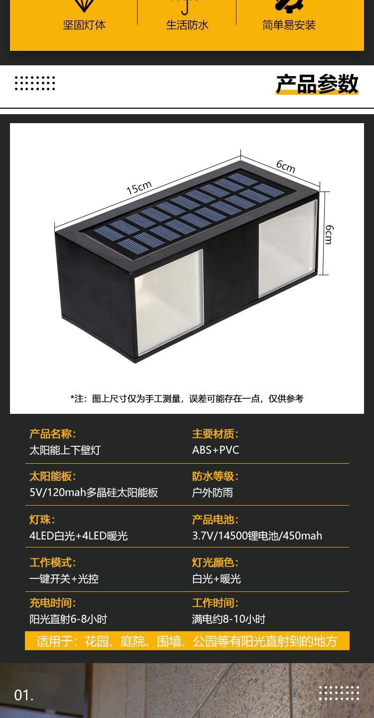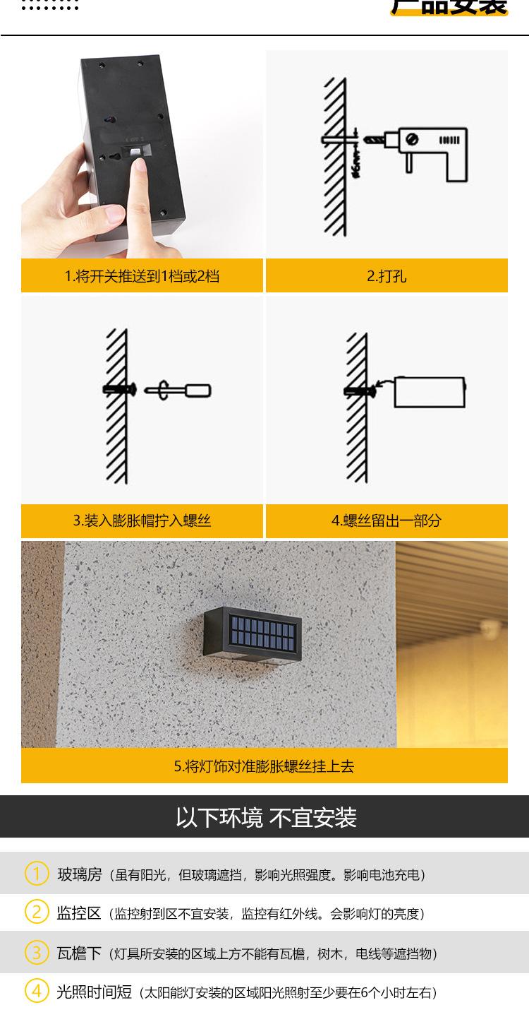Lámpara solar para jardín al aire libre, lámpara de pared para decoración de villas, jardín, casa, patio, escalera, lámpara de pie, lámpara de pared