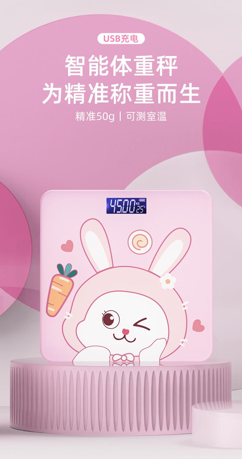 Nueva báscula electrónica inteligente para el cuerpo humano, báscula de peso doméstica recargable, venta al por mayor de básculas de peso, báscula corporal de dibujos animados linda