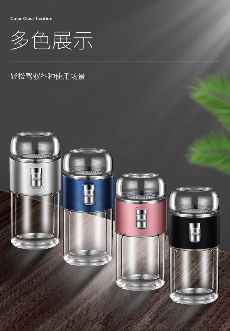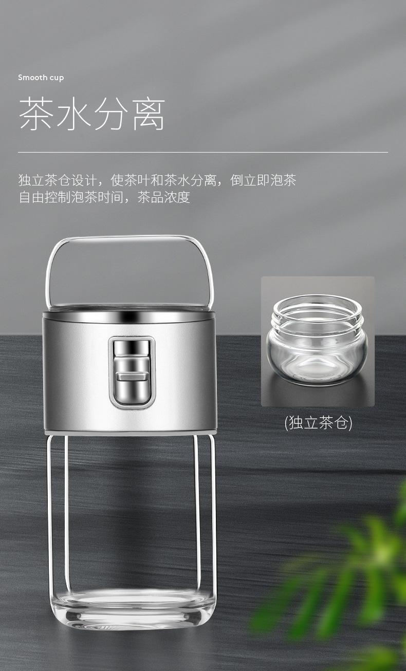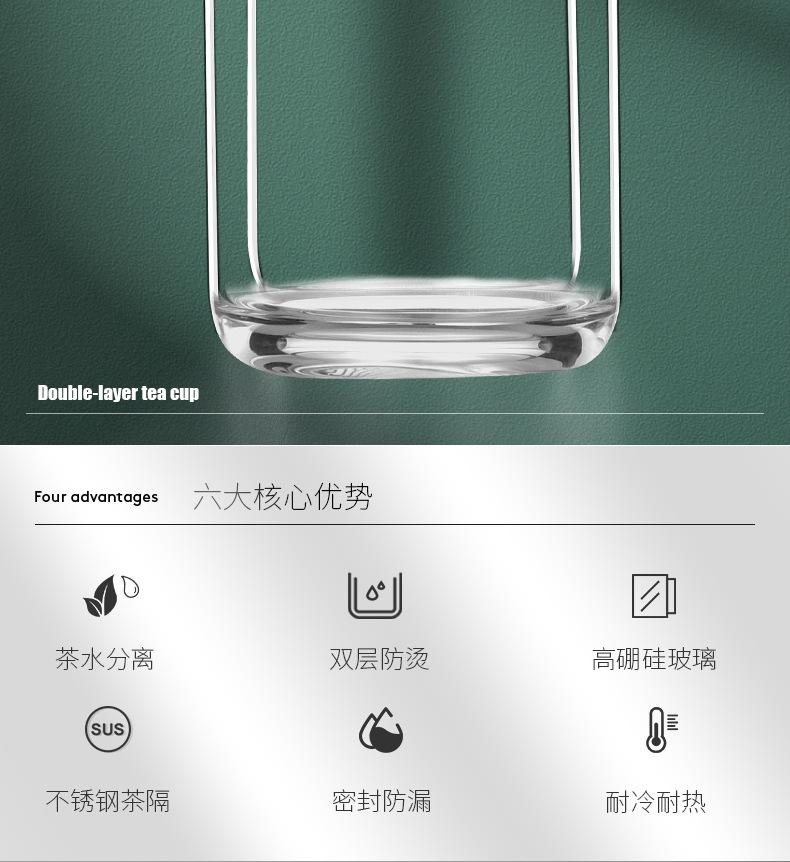 Mini Vaso Termo para Separación de Té y Agua para el Hogar Sencillo Resistente a Altas Temperaturas Vaso para Agua Portátil de Vidrio de Doble Capa de Alto Borosilicato