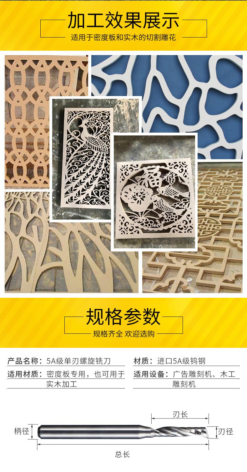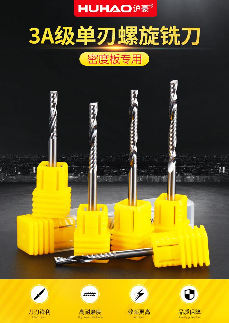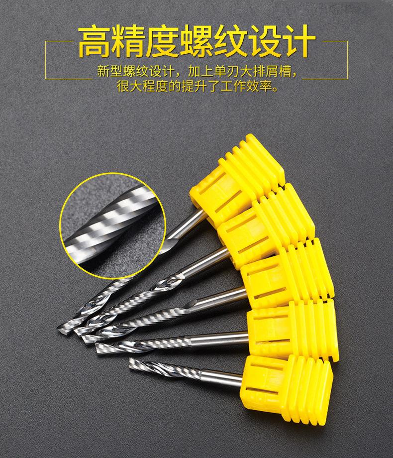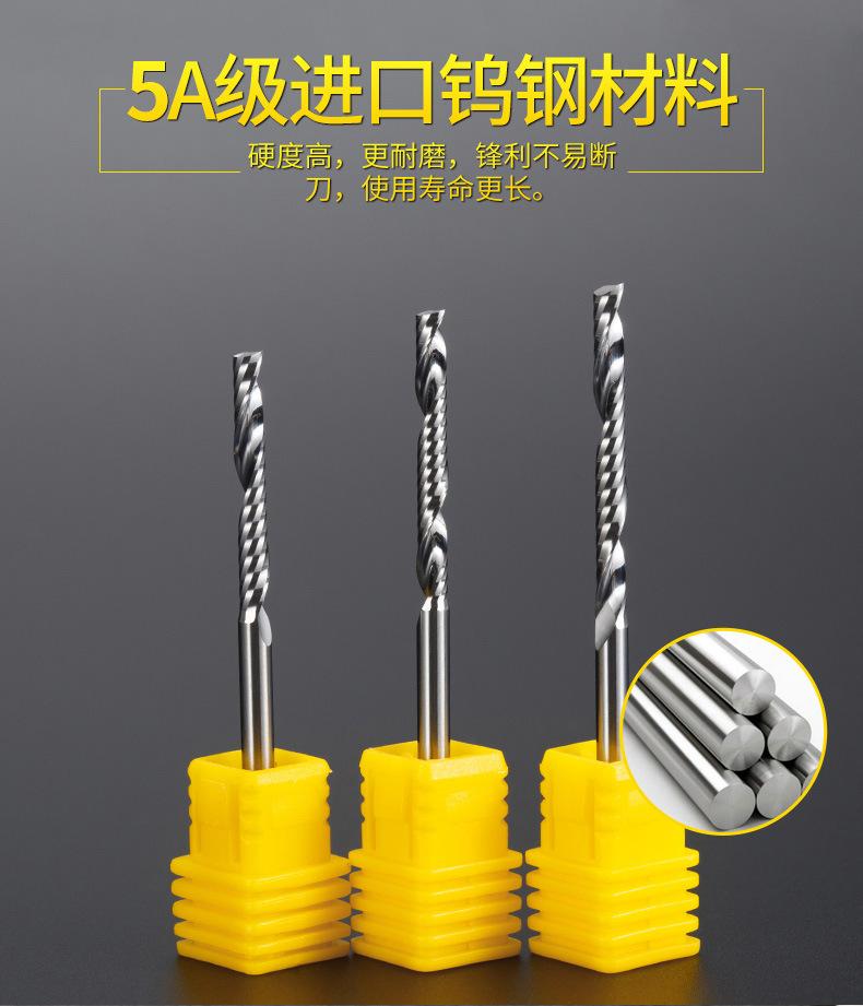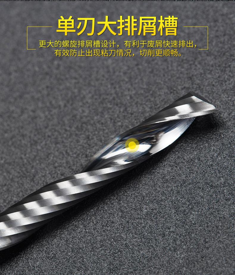Fresa espiral de una sola hoja Huhao de 3,175 mm para grabado publicitario, máquina de grabado, fresa de una sola hoja de acero de tungsteno