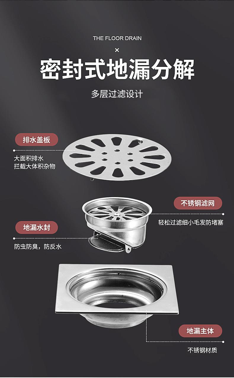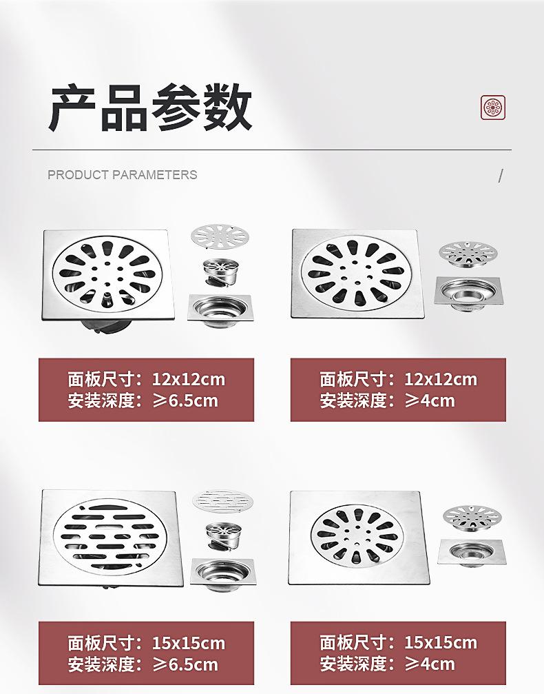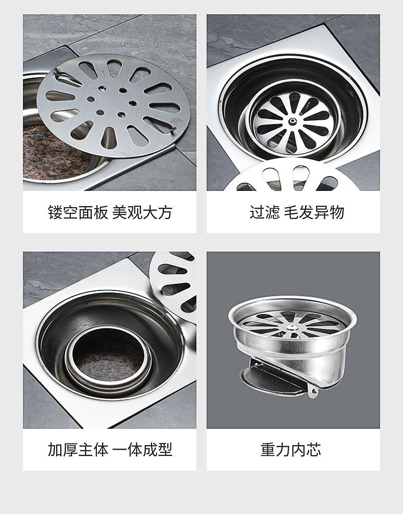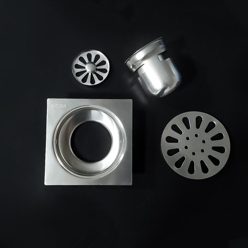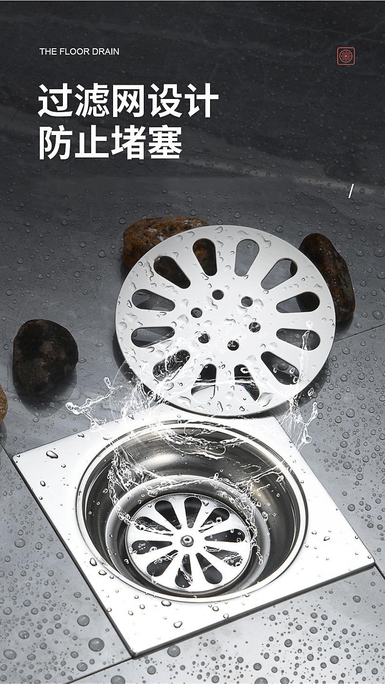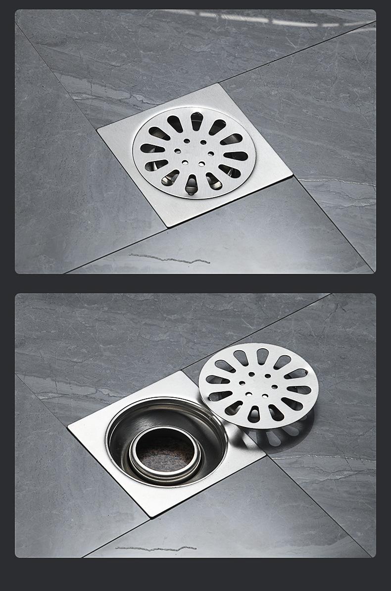 Desagüe de piso de acero inoxidable de 4 pulgadas para lavadora, inodoro, cuarto de ducha, proyecto 75/110, tubería profunda, sello de agua, desagüe de piso cuadrado con desodorante