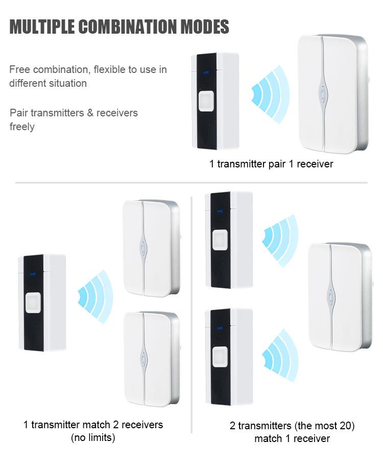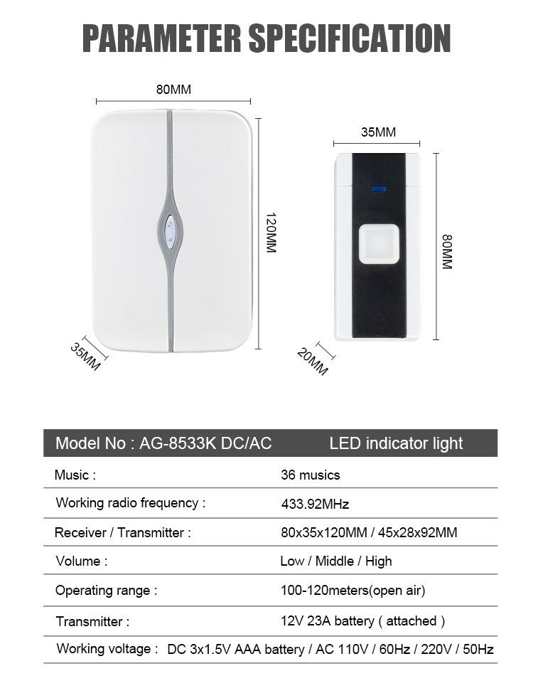 Timbre inalámbrico Xinhui, localizador digital para el hogar, uno a uno, de larga distancia, resistente al agua, 8533