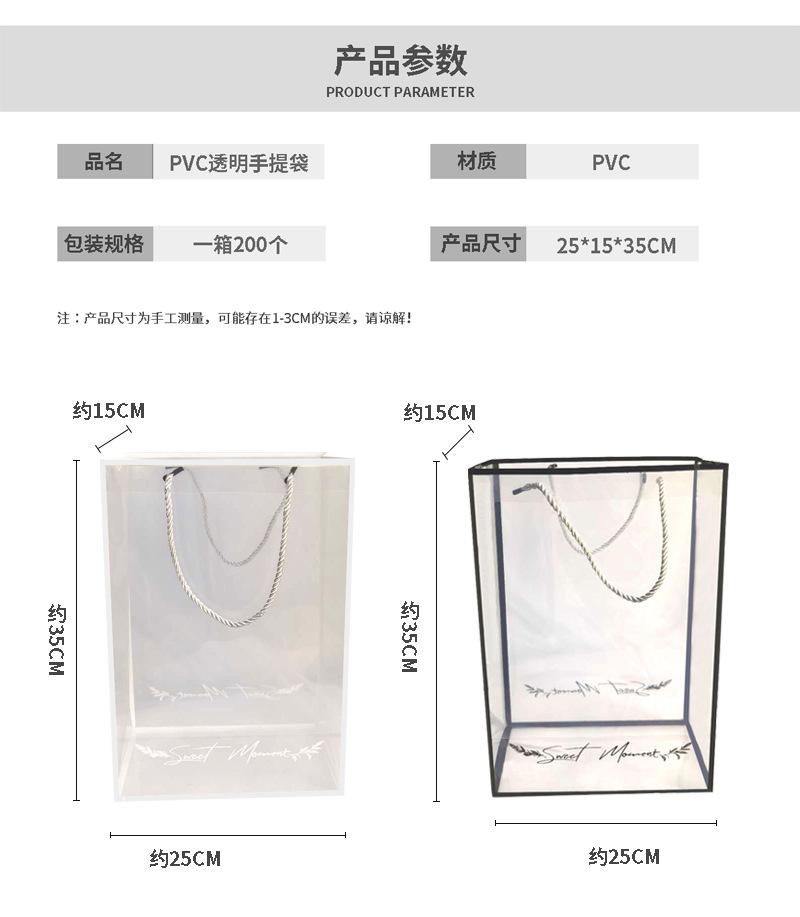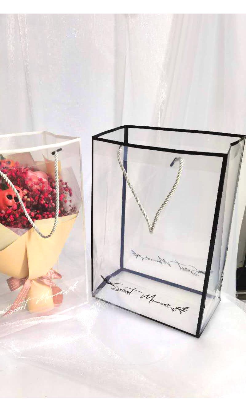 Bolso transparente al por mayor, bolsa de regalo de plástico PVC, bolsa de mano impermeable, bolsa de regalo, bolsa de embalaje de flores