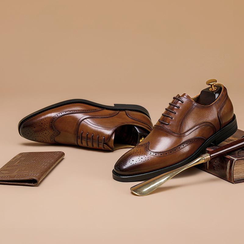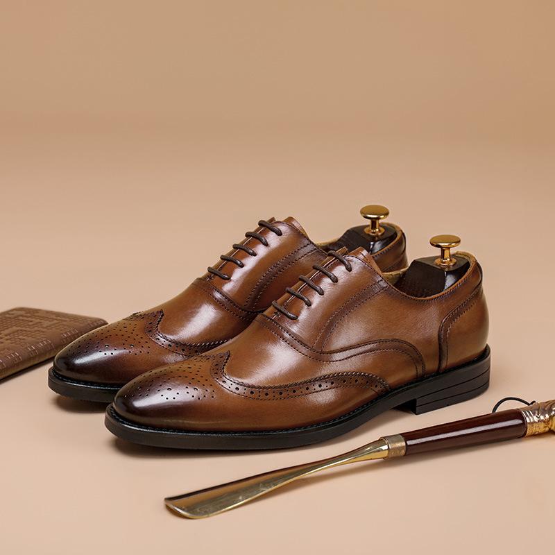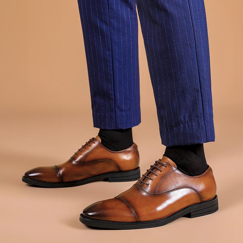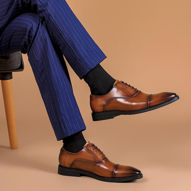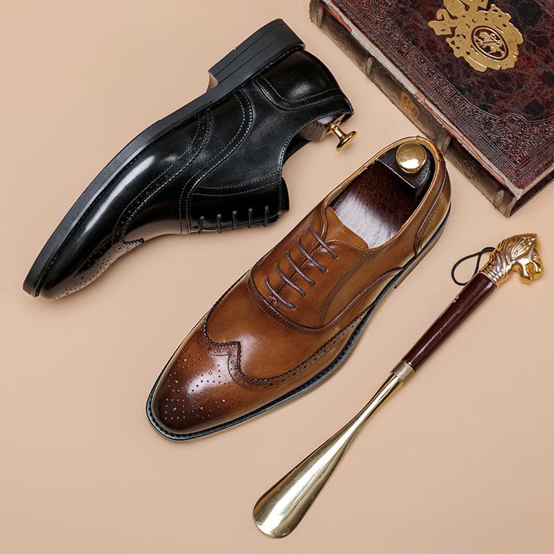 Zapatos de Cuero para Hombre, Zapatos Oxford Formales de Negocios, Zapatos de Cuero Genuino de Tres Articulaciones de Cuero Vacuno de Primera Capa para Hombre, Zapatos de Boda Estilo Británico