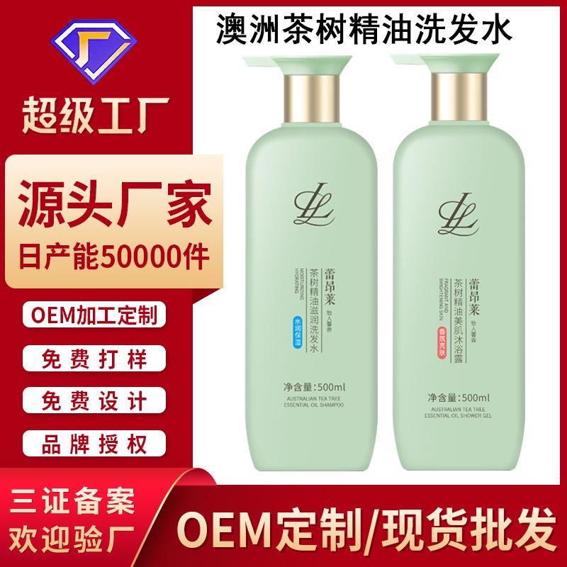 Champú con aceite esencial de árbol de té, champú anticaspa refrescante, hidratante y esponjoso, venta al por mayor, acondicionador personalizado, gel de ducha