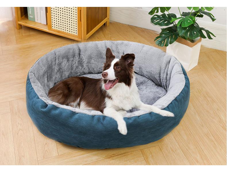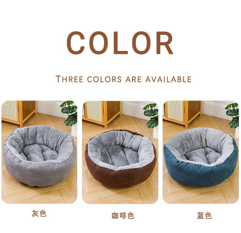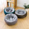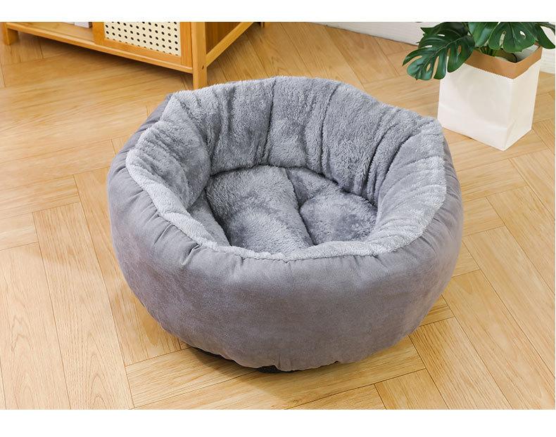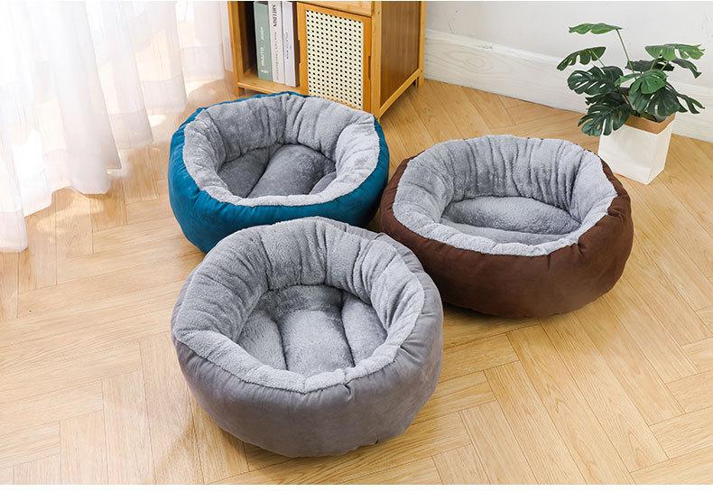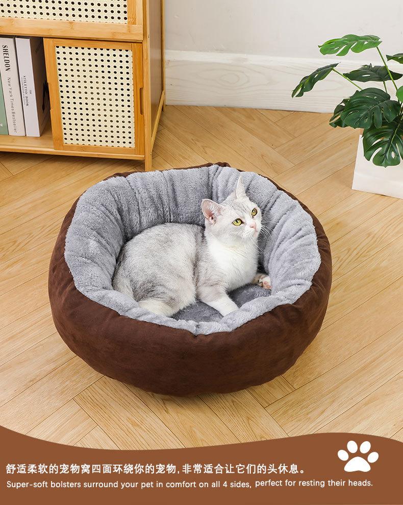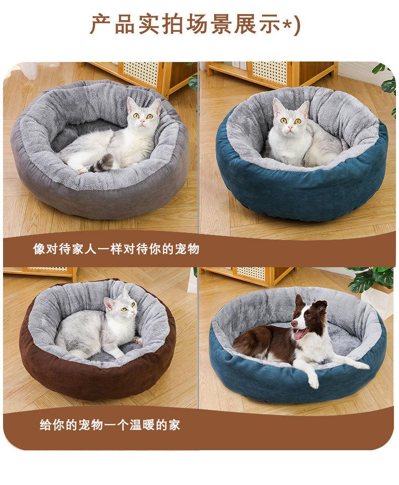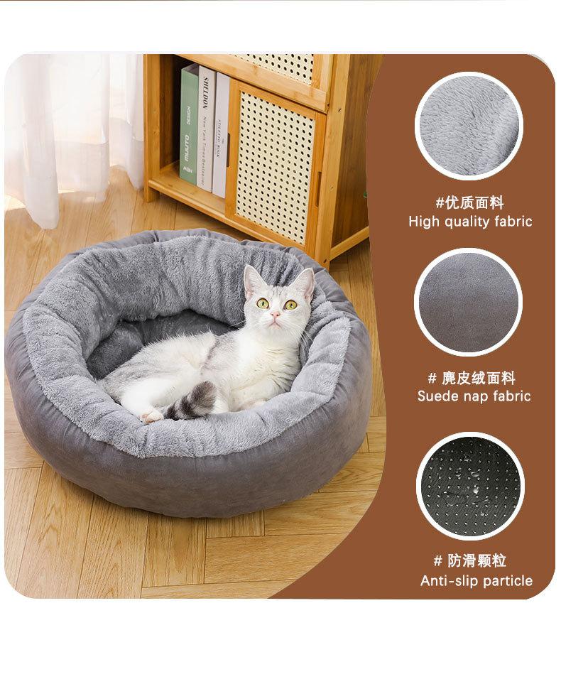 Caseta de gamuza redonda con borde cruzado para gatos, cálida para el invierno, nido para dormir para gatos y perros, tamaño mediano, nido antideslizante para perros