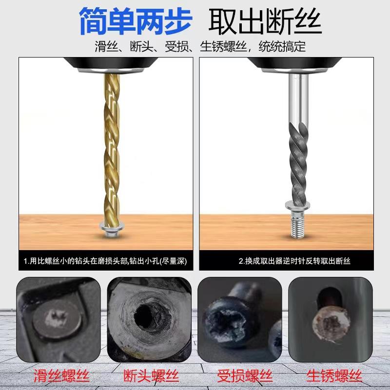 Nombre del producto: Juego de extractores de tornillos para brocas helicoidales de mano izquierda británicas de 10 piezas