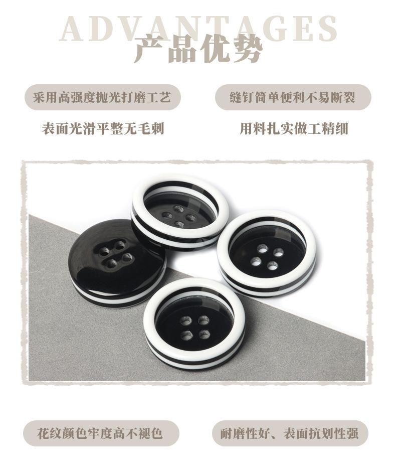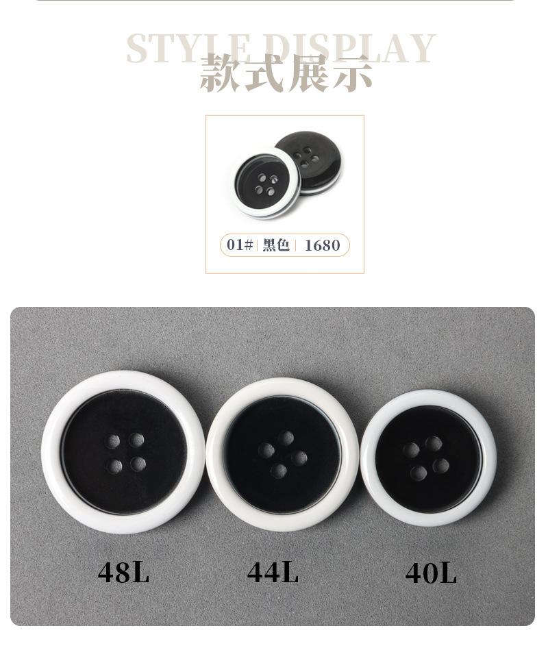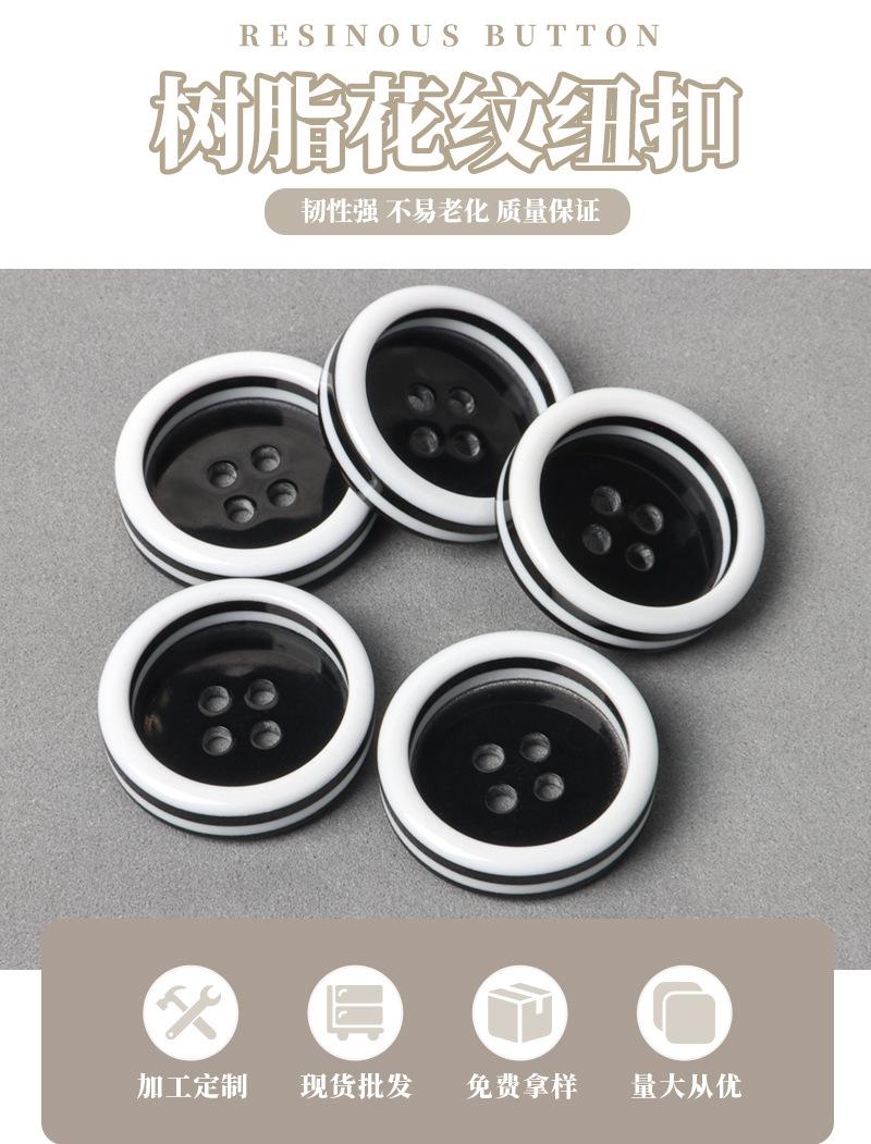 Camisa de Botones de Borde Grueso Blanco y Negro Botones de Resina Botones Decorativos para Abrigo de Cuatro Ojos Botones Hechos a Mano DIY Venta al por Mayor por Lote