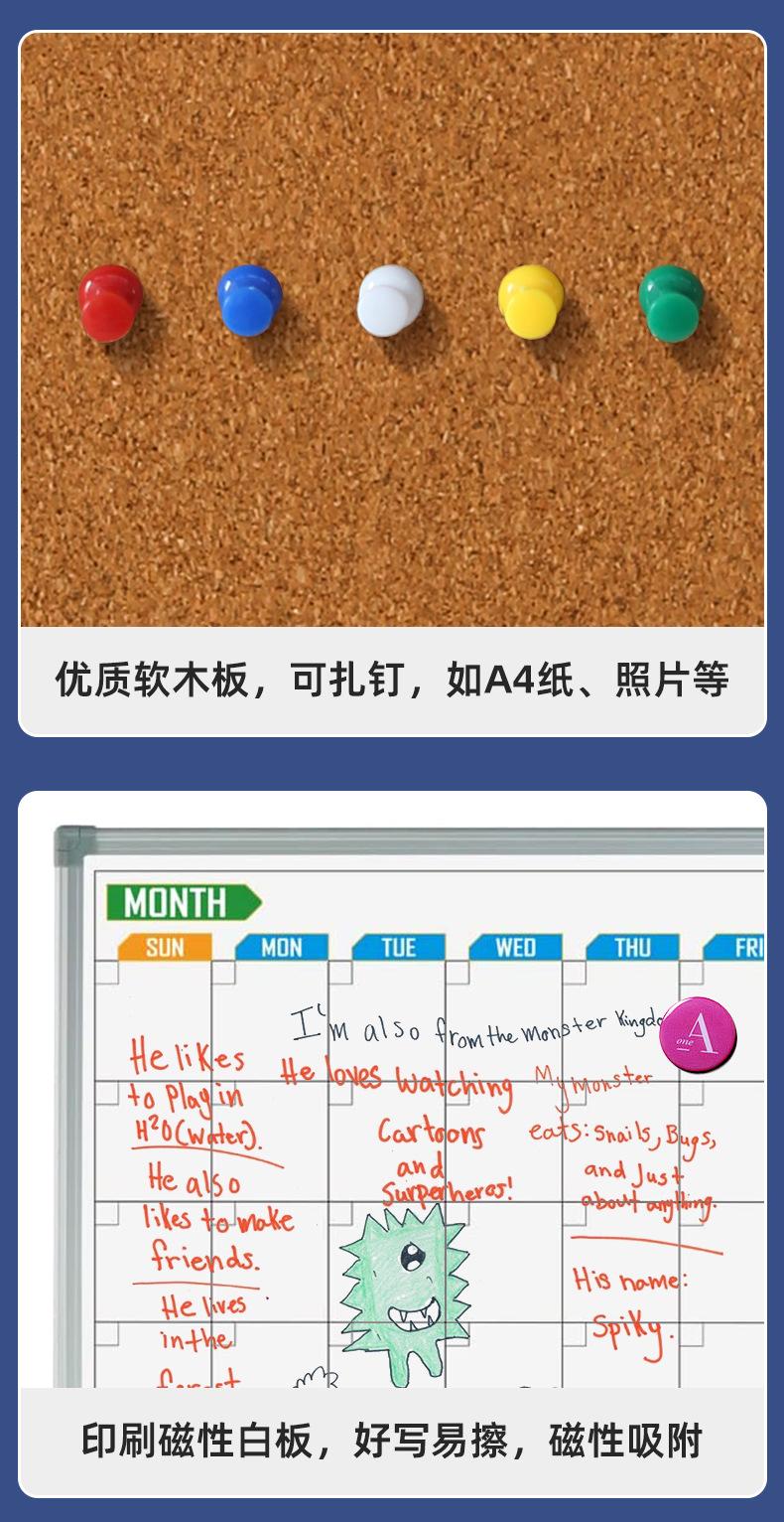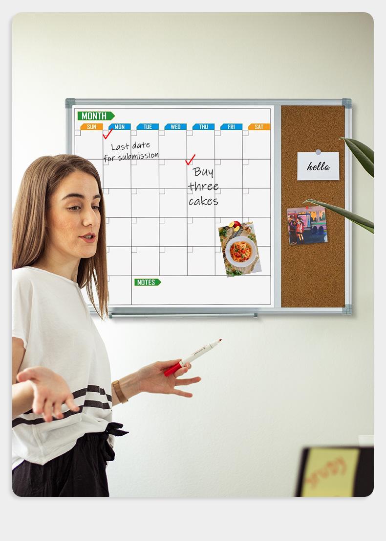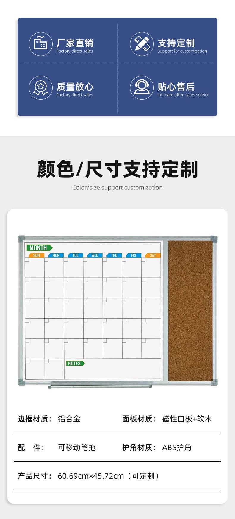Compra Pizarra blanca con calendario personalizado, pizarra combinada de corcho para colgar en la pared, tablero de planificación del mismo tamaño de Amazon, pizarra magnética para escribir al por mayor en Joom.pro