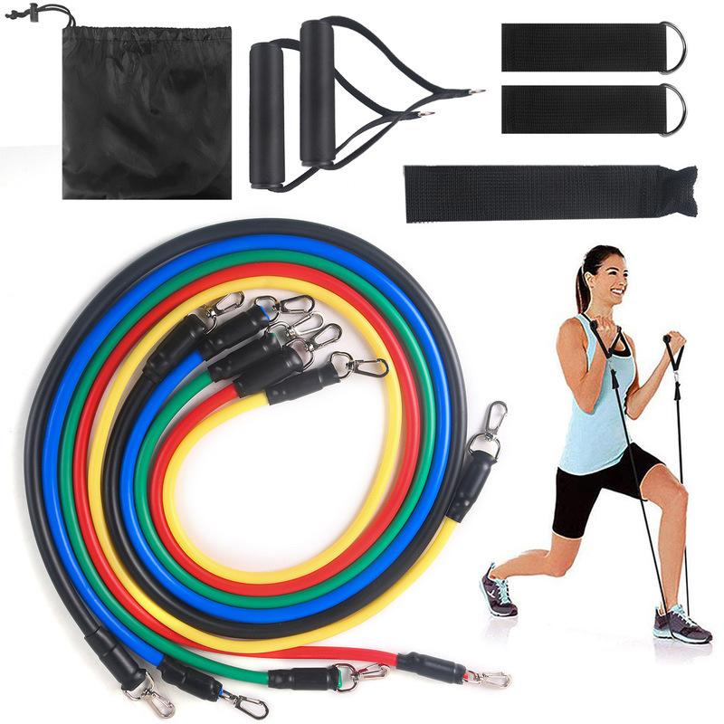Cuerda de tensión elástica Fitness TPE de 11 piezas, juego de entrenamiento en interiores, dispositivo de tensión multifunción, banda de resistencia puntual