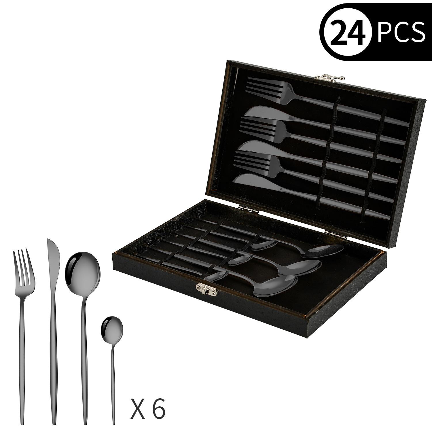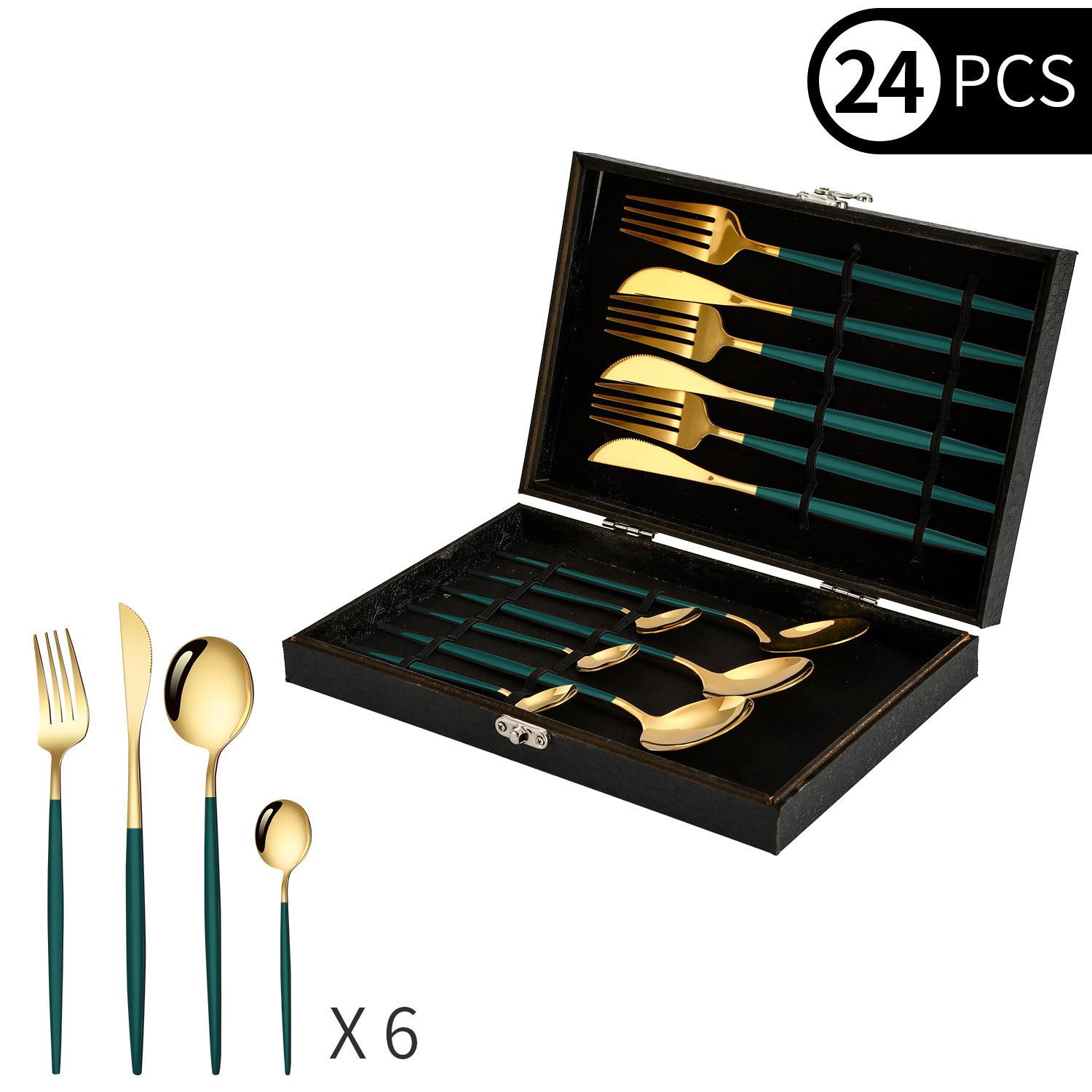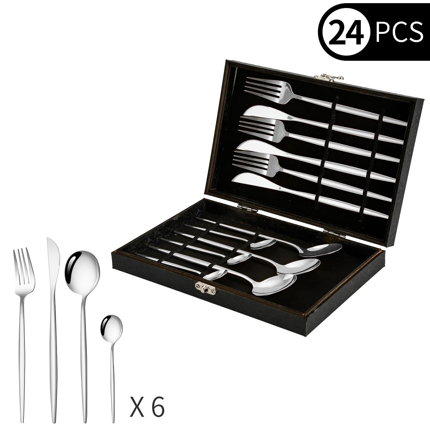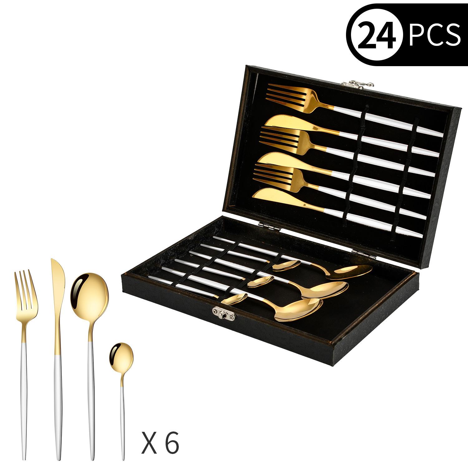 Compra Cubiertos portugueses de acero inoxidable de Amazon, juego de 12 piezas para hotel transfronterizo, cubiertos occidentales, caja de madera con grano de cuero, cuchillo para carne, tenedor y cuchara al por mayor en Joom.pro