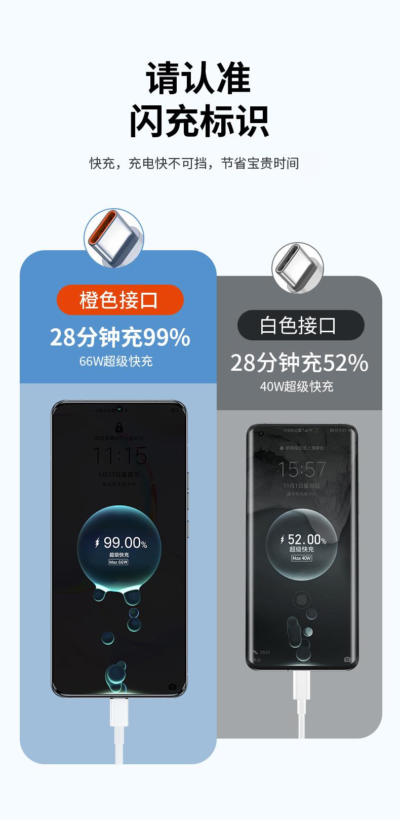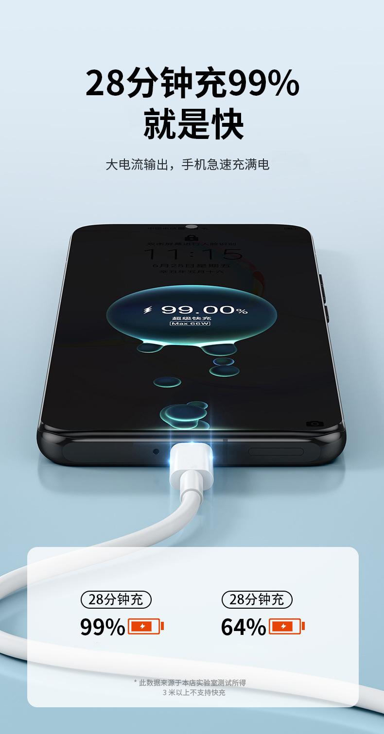 Cable de Datos Tipo C de Carga Super Rápida 2m Adecuado para Honor Samsung Oppo Xiaomi Cable Cargador de Teléfono Móvil 66W