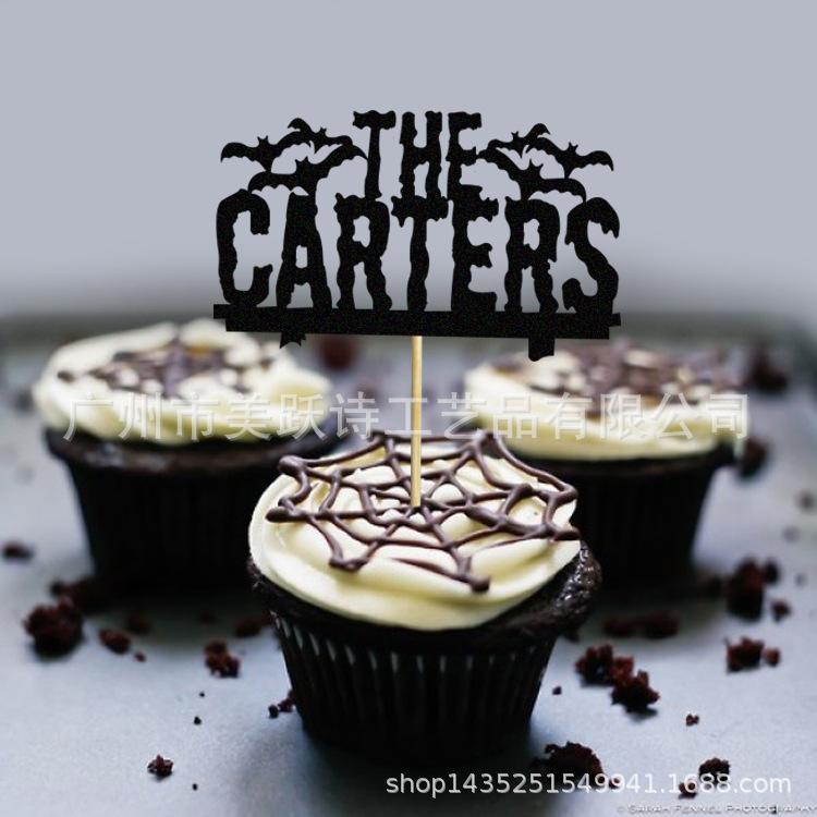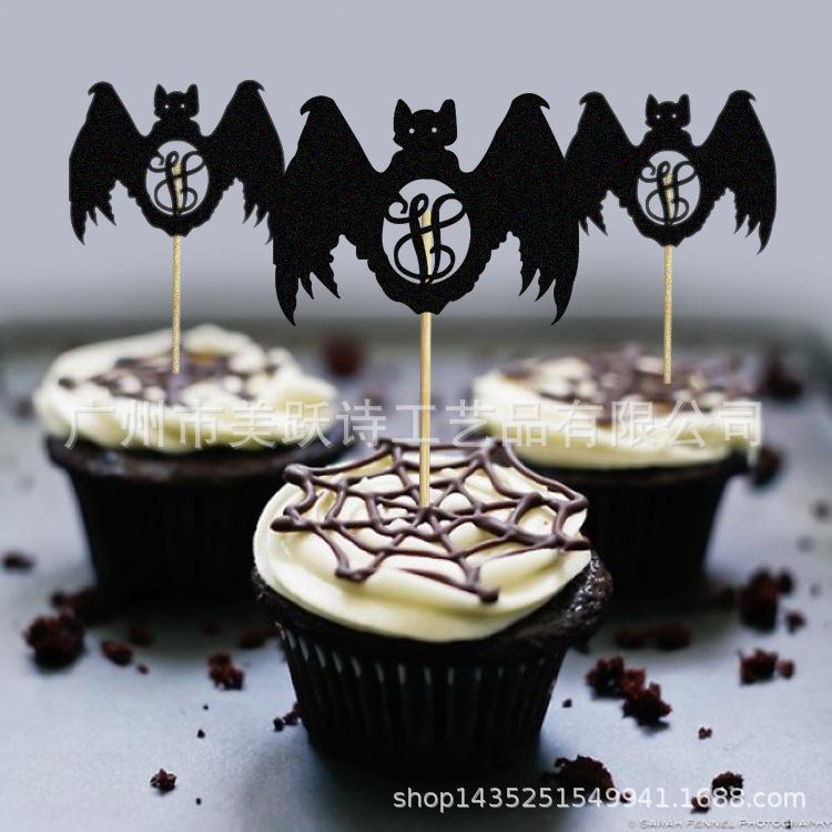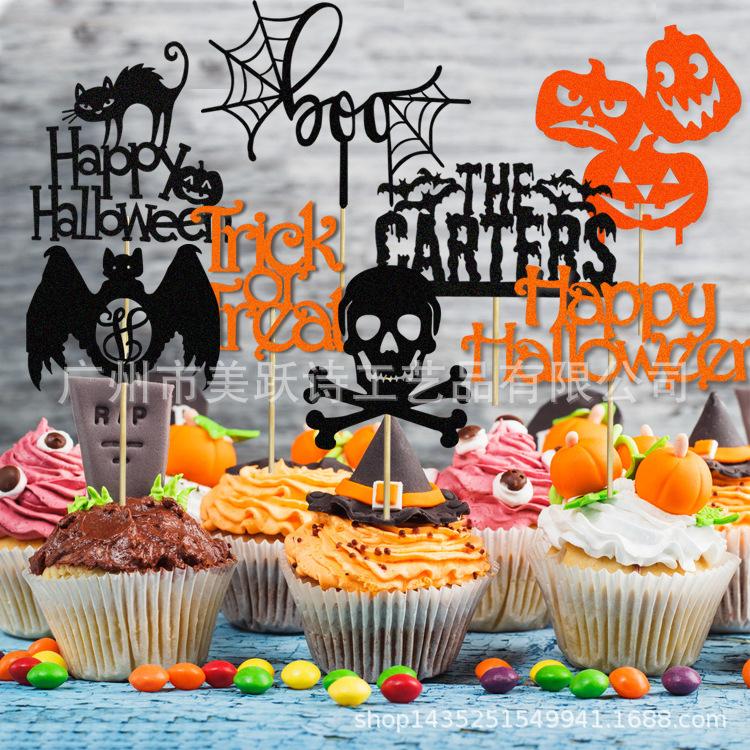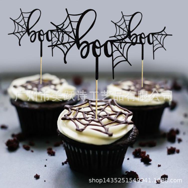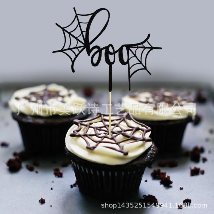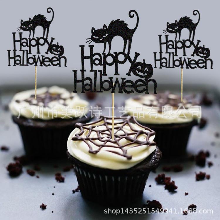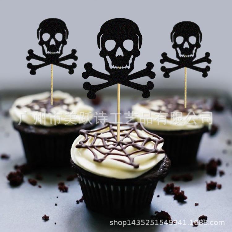 Nueva tarjeta de decoración para tarta de fiesta de Halloween, inserción de tarjeta pequeña con forma de calavera, inserción de decoración de postres con forma de araña