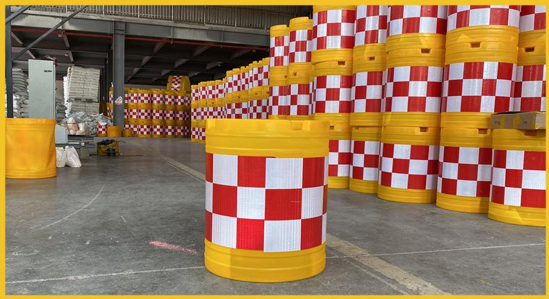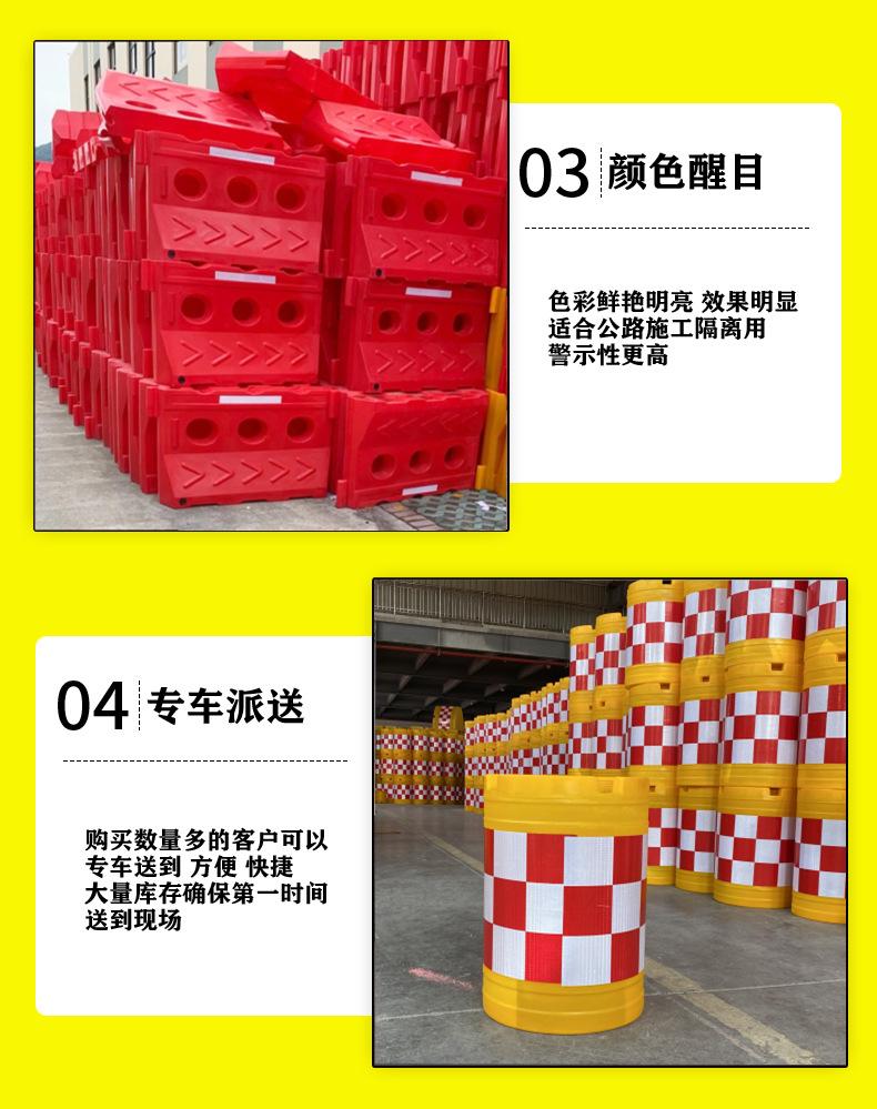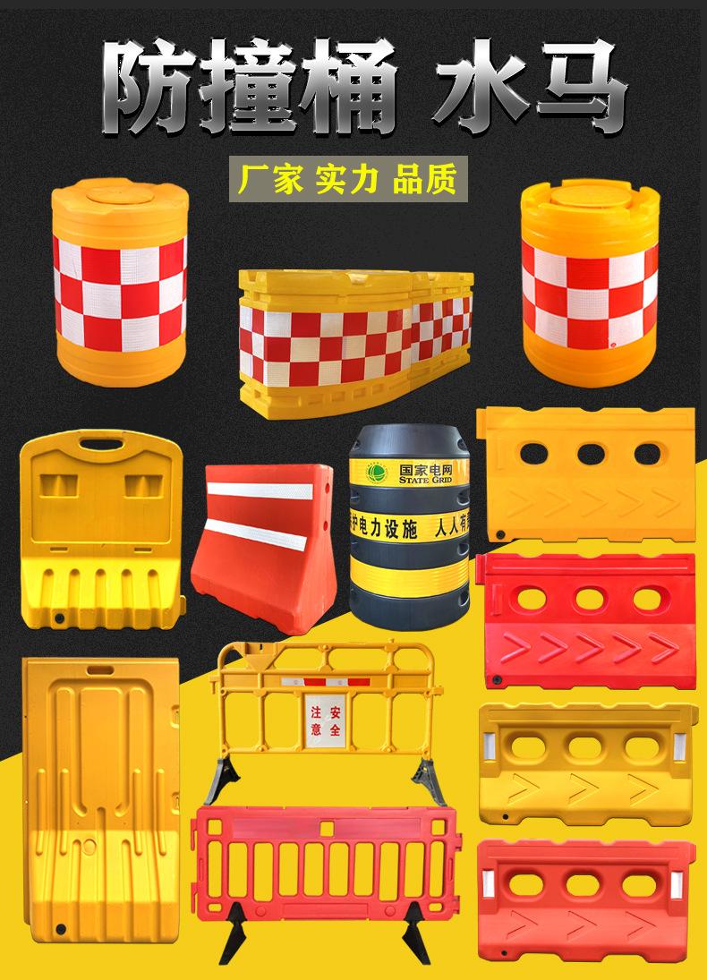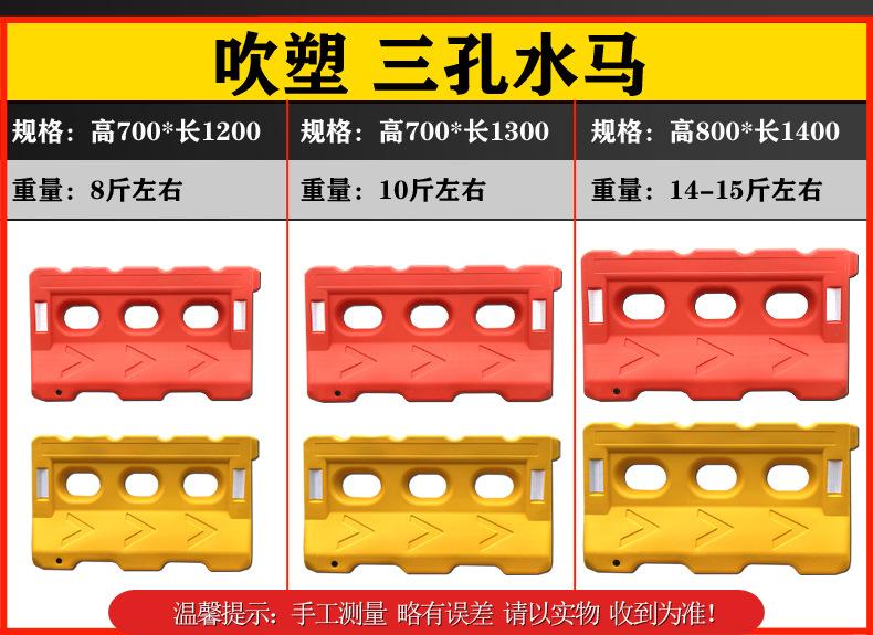 Cubo anticolisión de tres agujeros para caballo de agua, barandilla reflectante, construcción de moldeo por soplado, recinto de plástico para caballo de agua, inyección de agua, aislamiento de carretera, muelle integrado