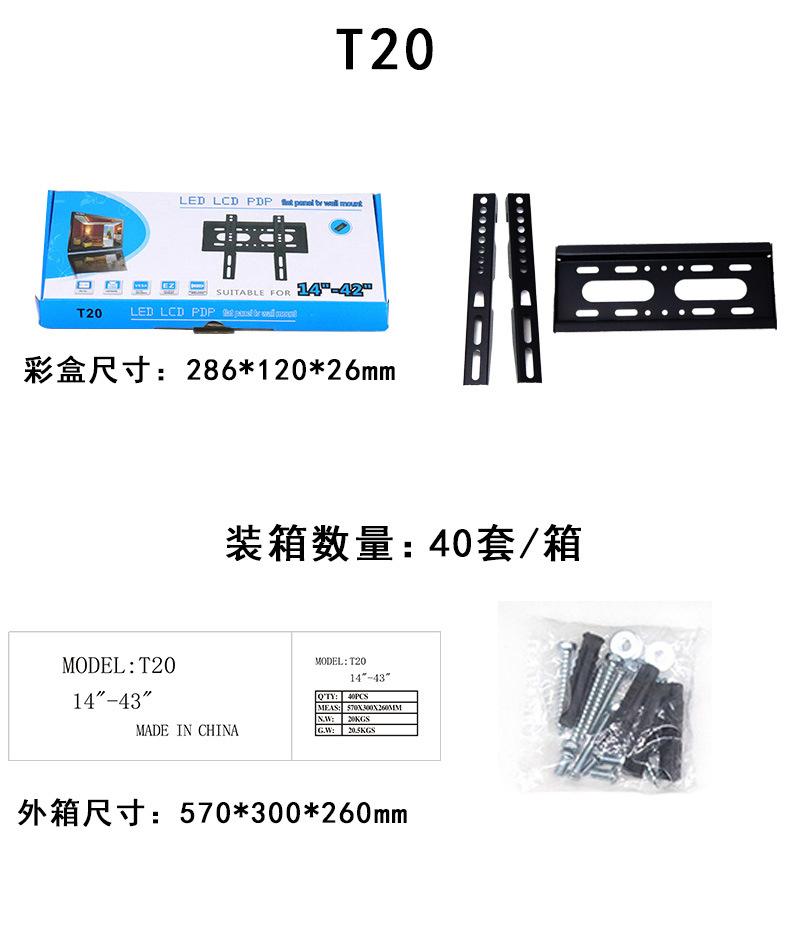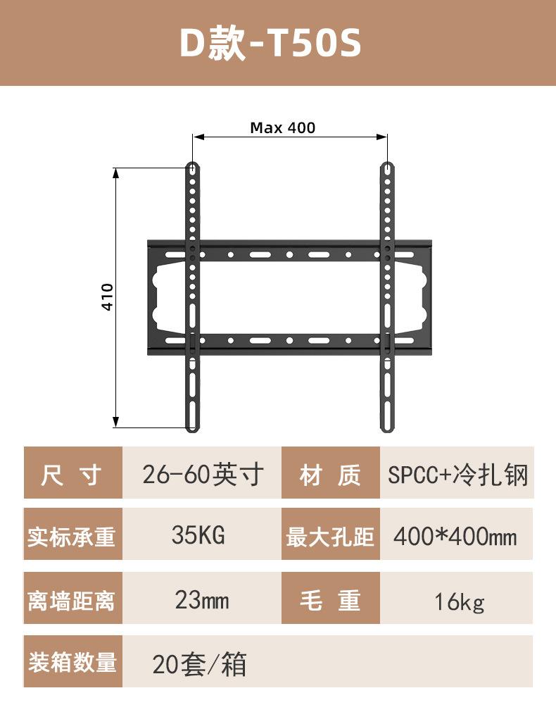 Soporte de TV Personalizado de 14-60 pulgadas Popular Soporte Fijo de TV para Comercio Exterior Transfronterizo