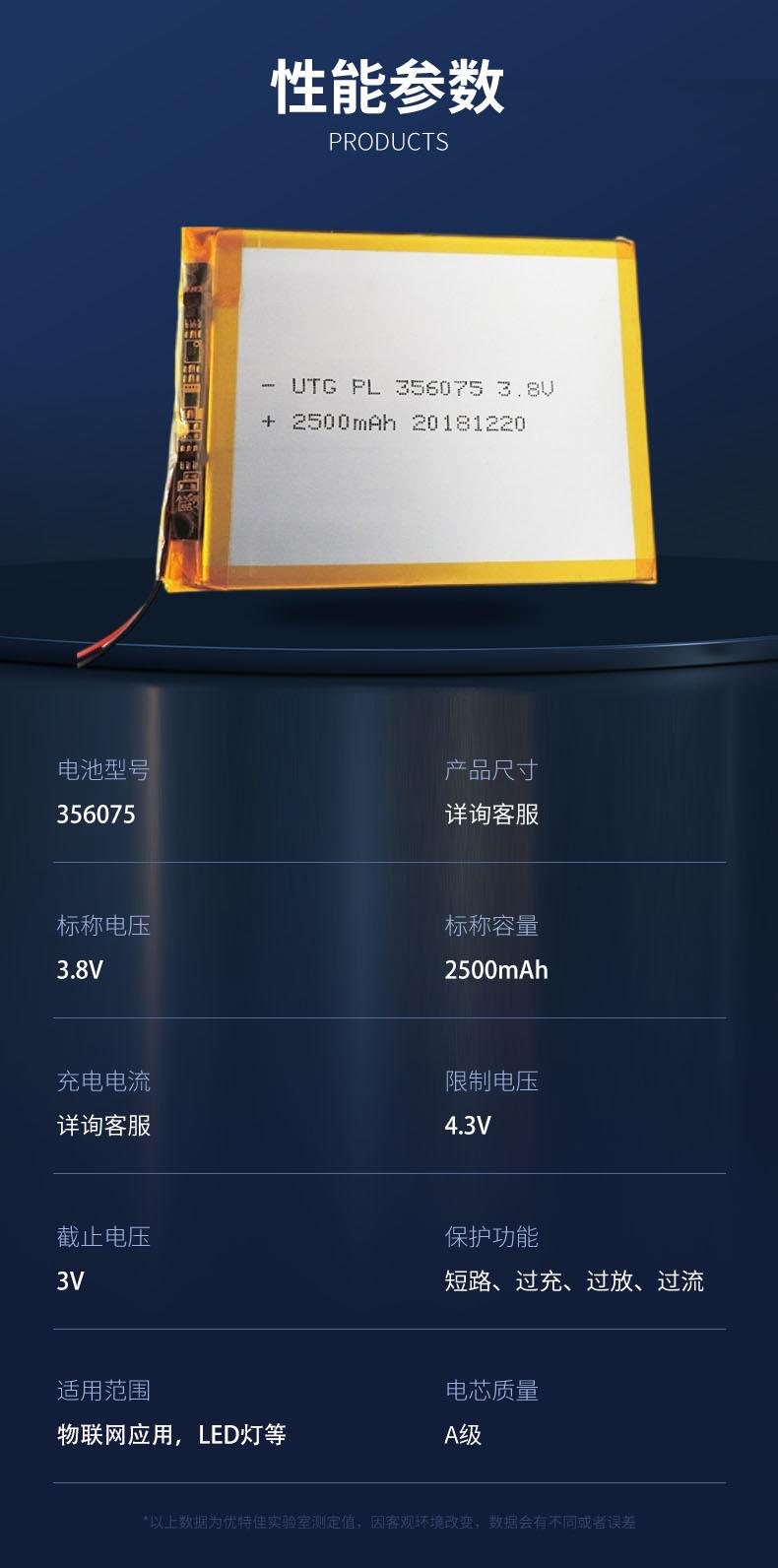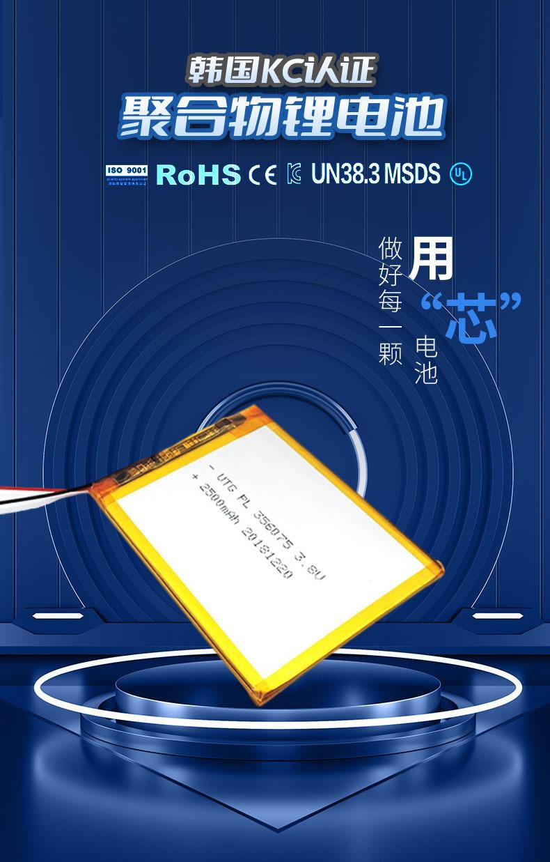 Personalización del Fabricante 356075 Batería de Polímero de Litio 2500mAh 3.8V Alto Voltaje Paquete Blando Luz LED Batería de Litio un Producto