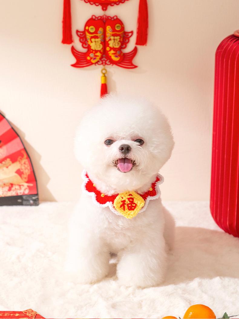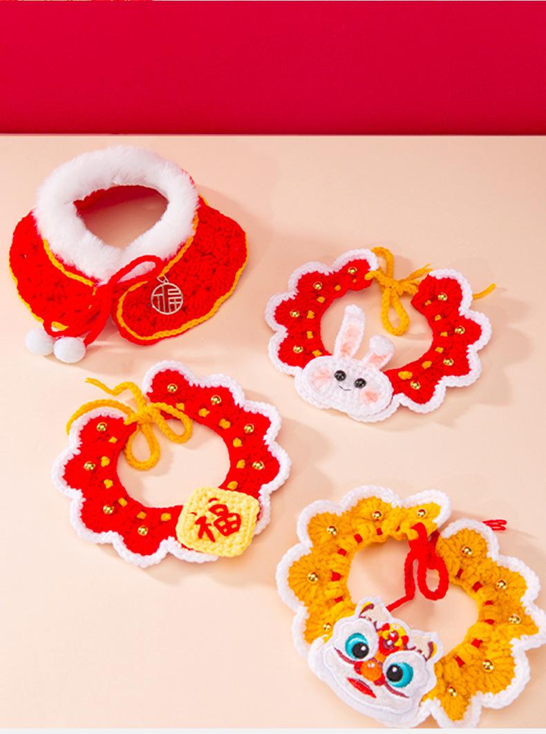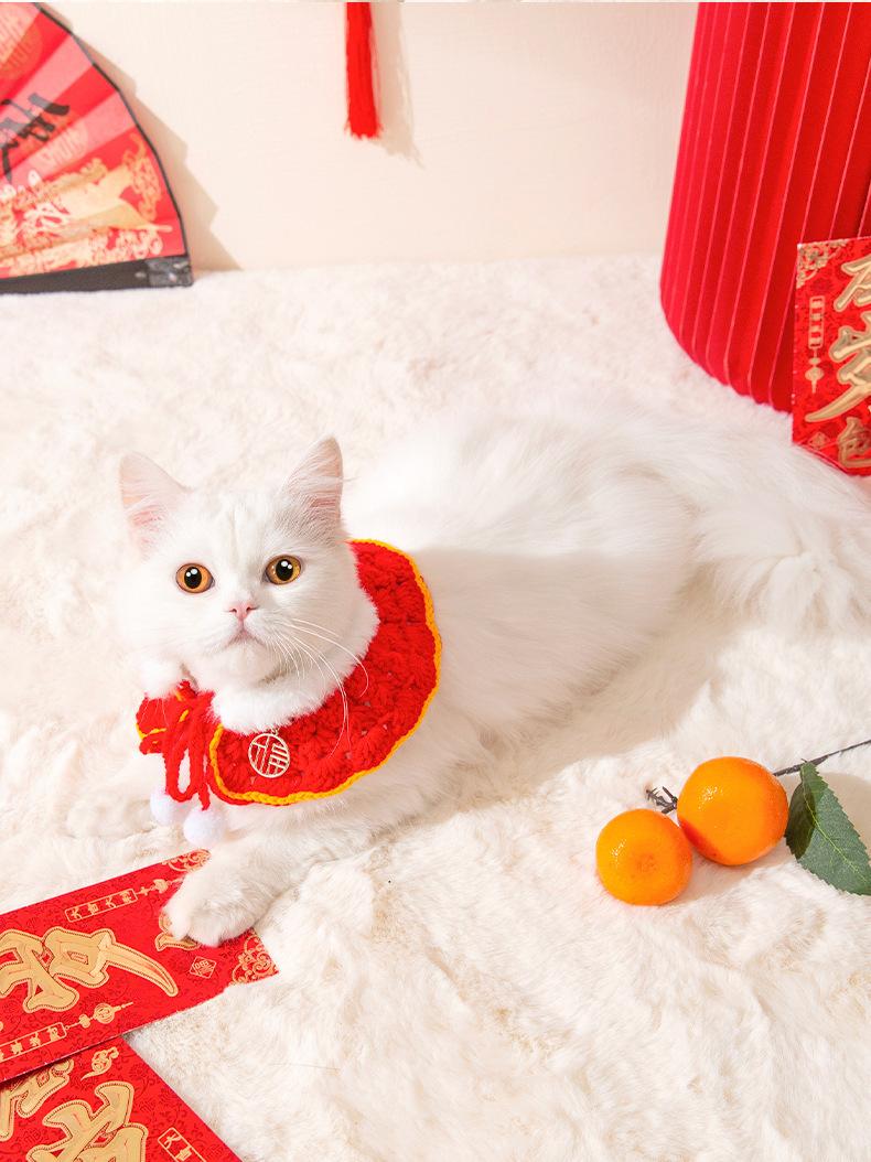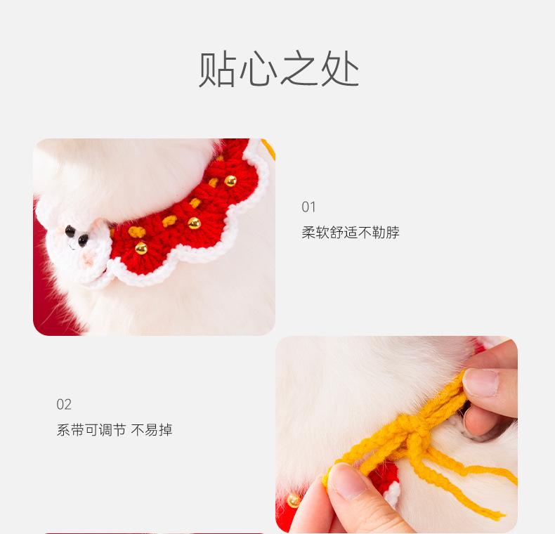 Collar tejido festivo de Año Nuevo para gato, collar navideño tejido a mano, mascota perro, bufanda de Año Nuevo, babero