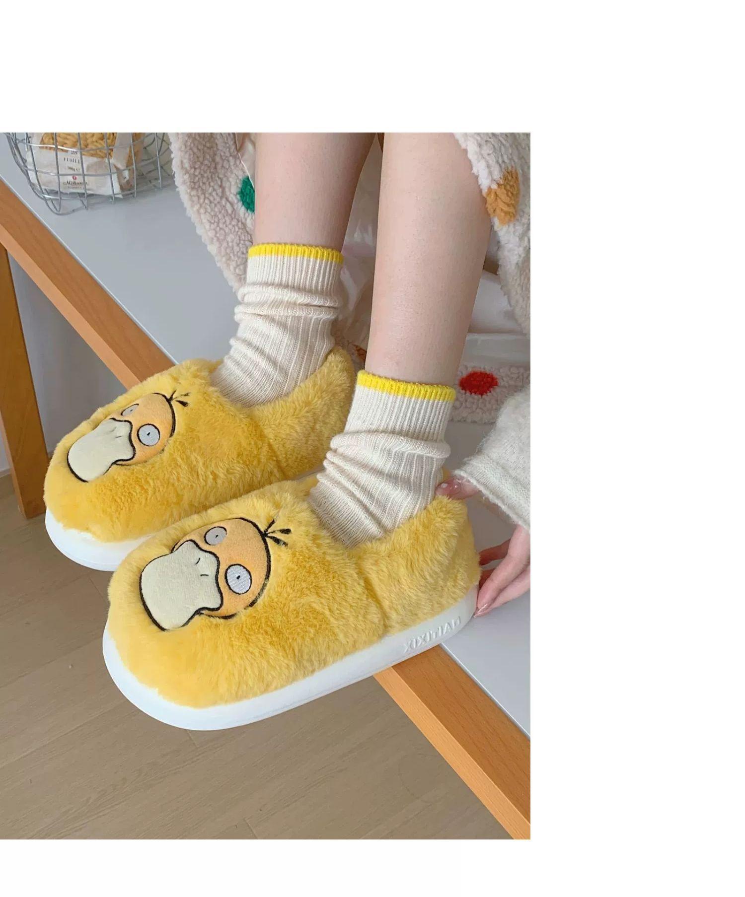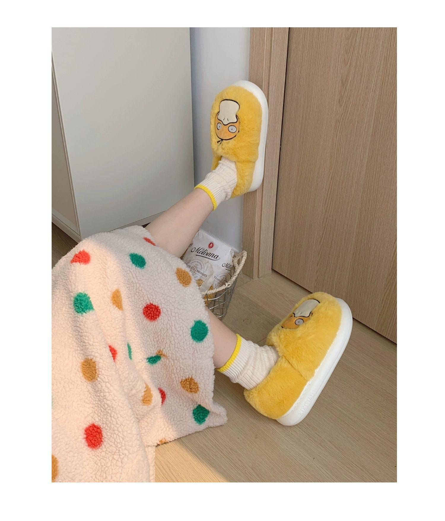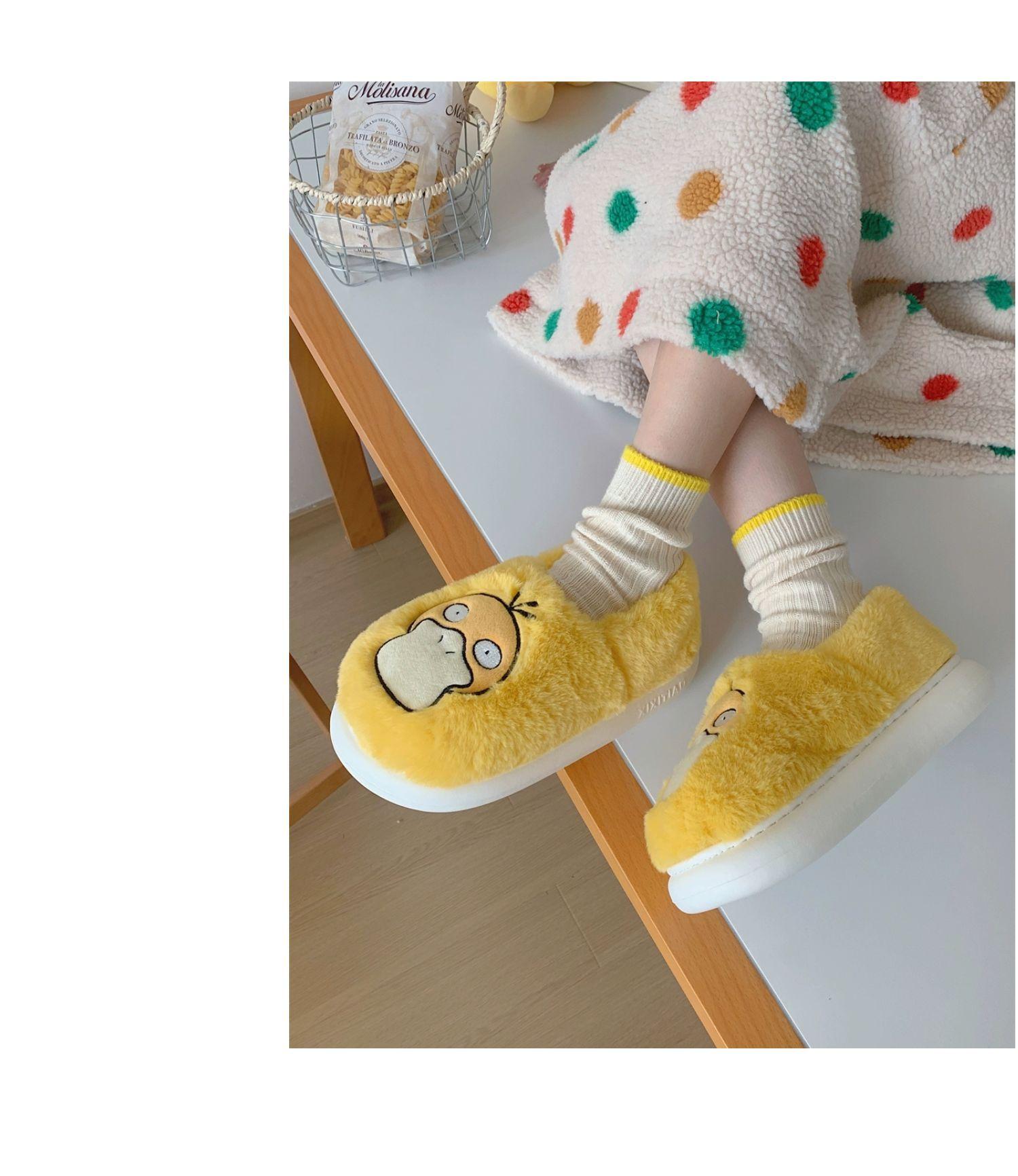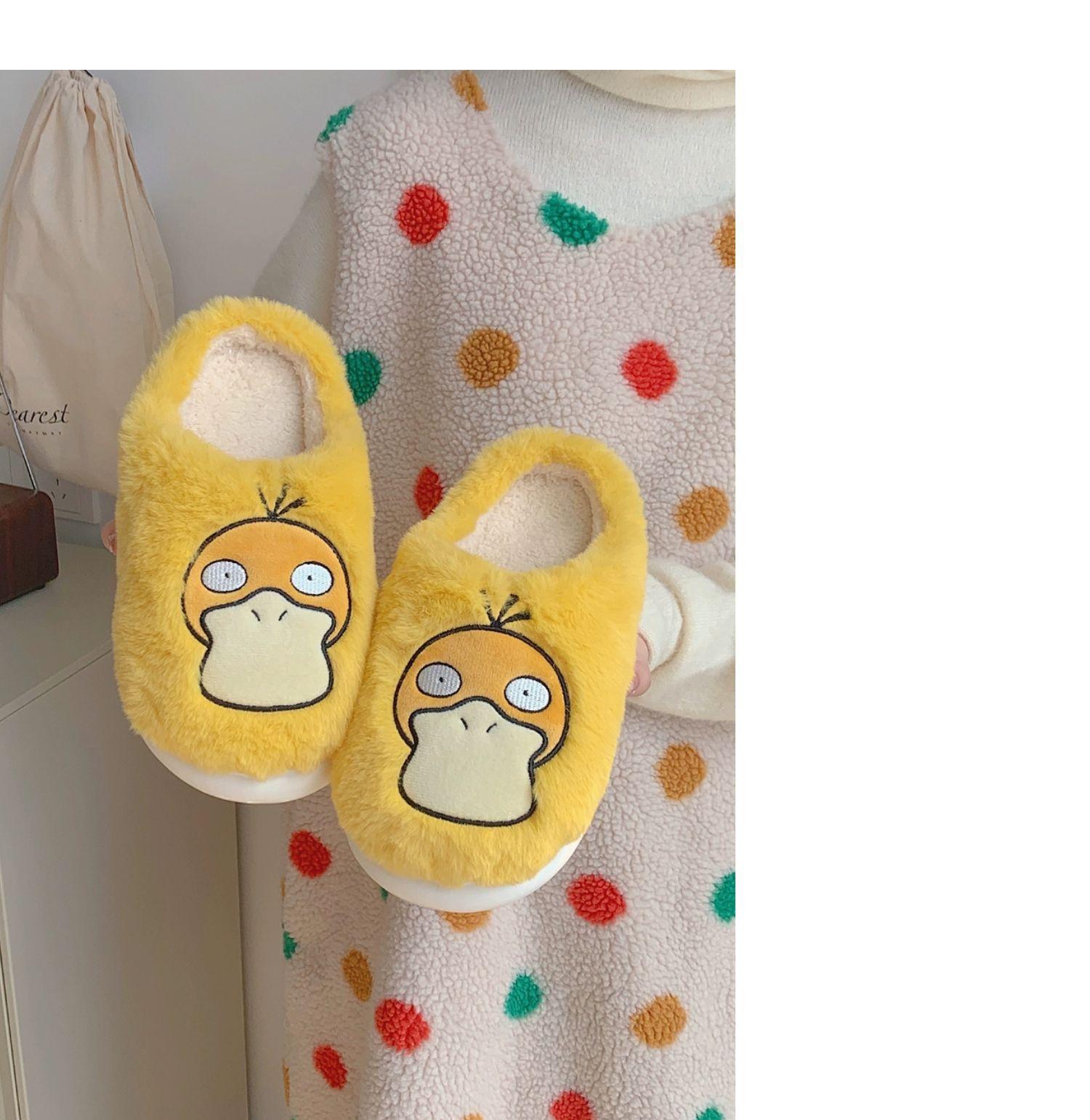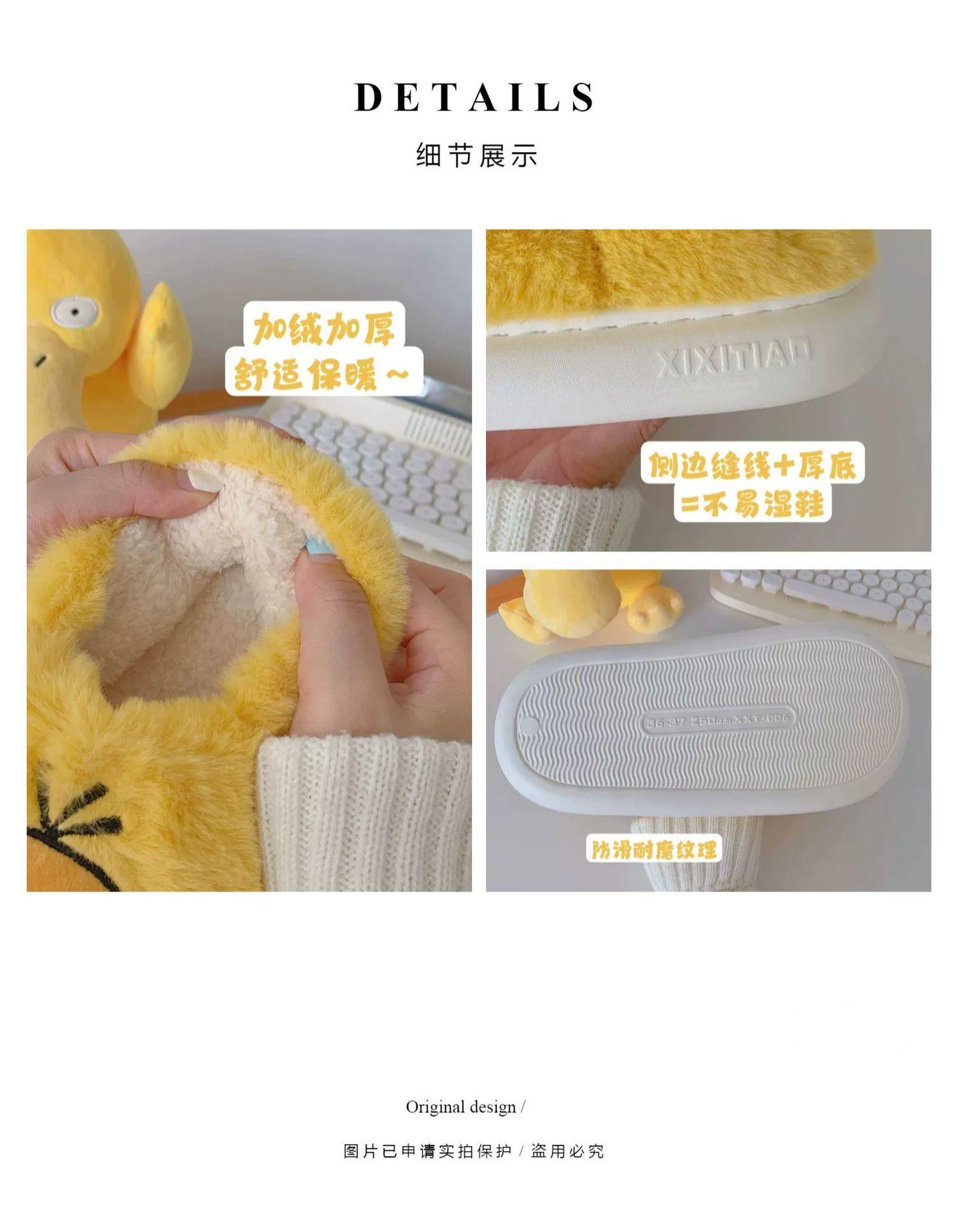 Zapatos de felpa cálidos de punta cerrada de pato Keaibao Kemeng Keda para estudiantes otoño e invierno para casa, zapatillas de algodón cómodas para interiores para mujer