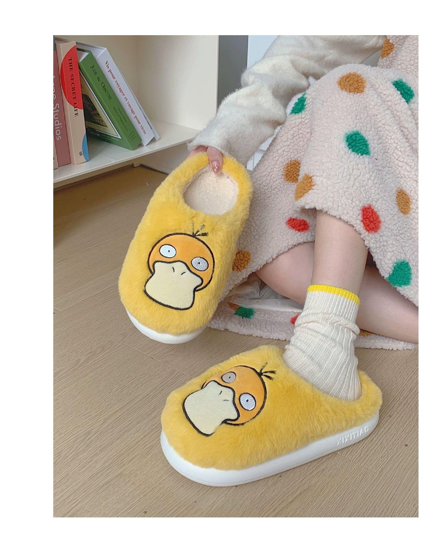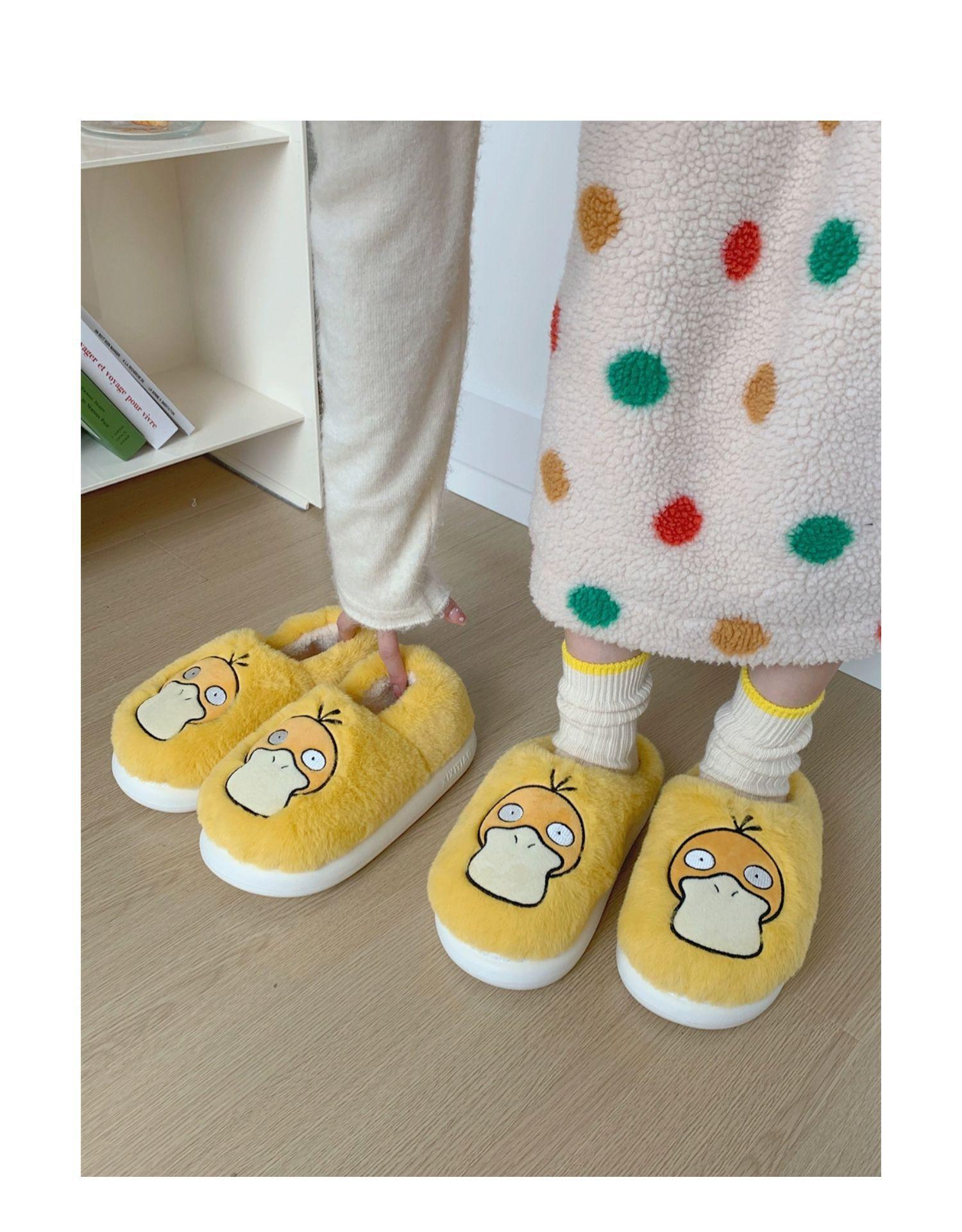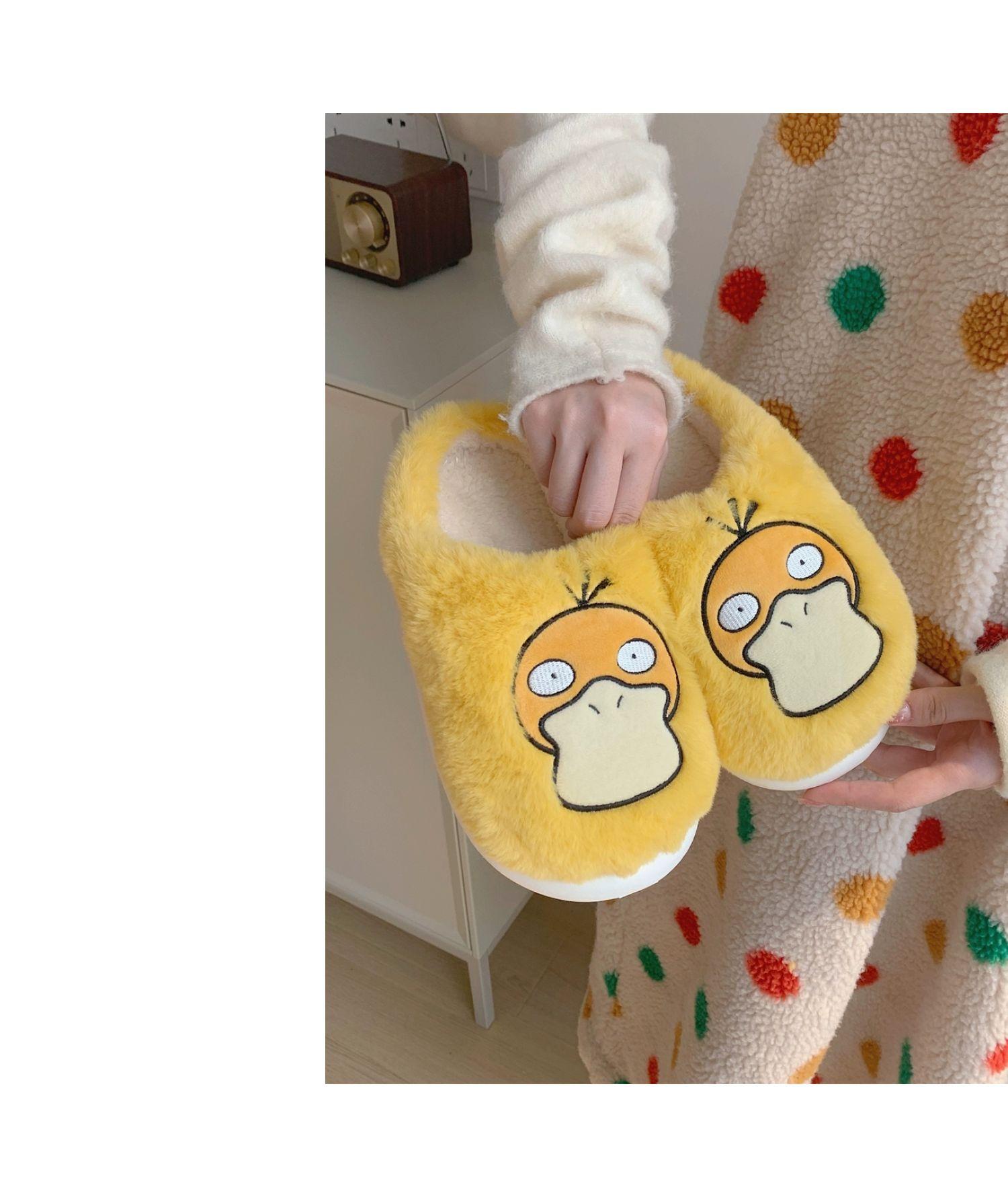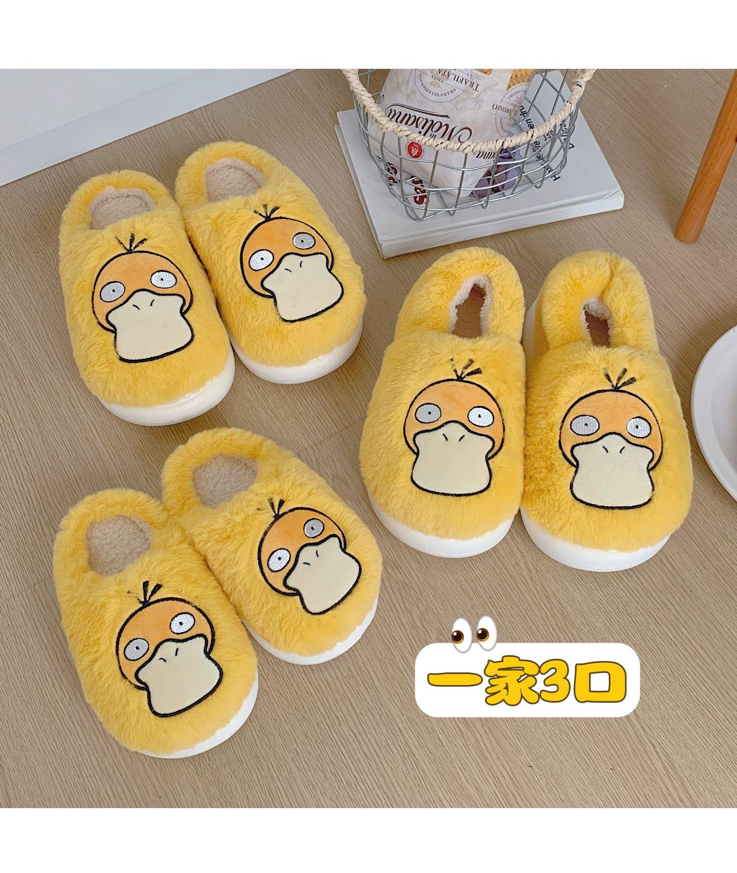 Zapatos de felpa cálidos de punta cerrada de pato Keaibao Kemeng Keda para estudiantes otoño e invierno para casa, zapatillas de algodón cómodas para interiores para mujer