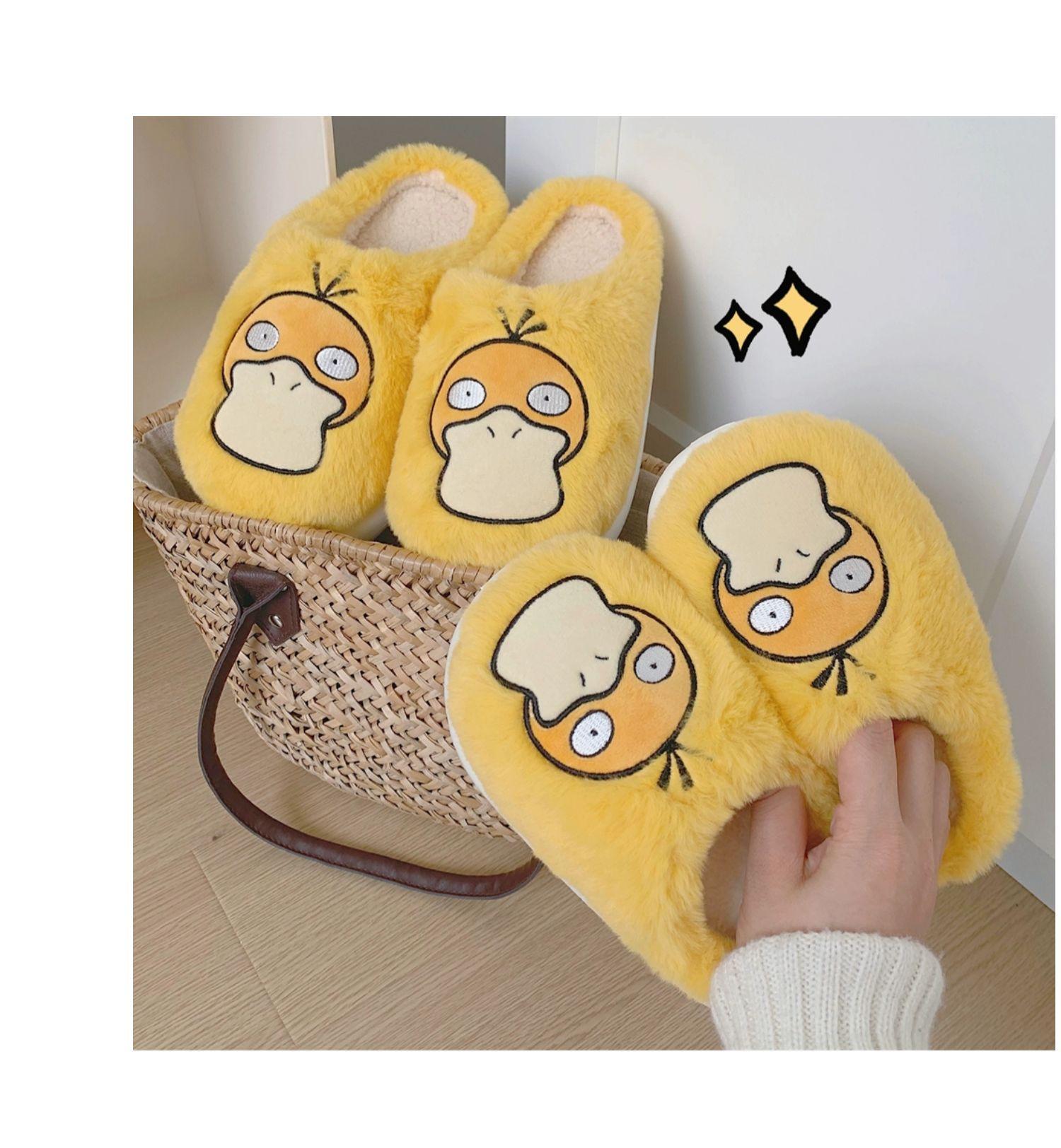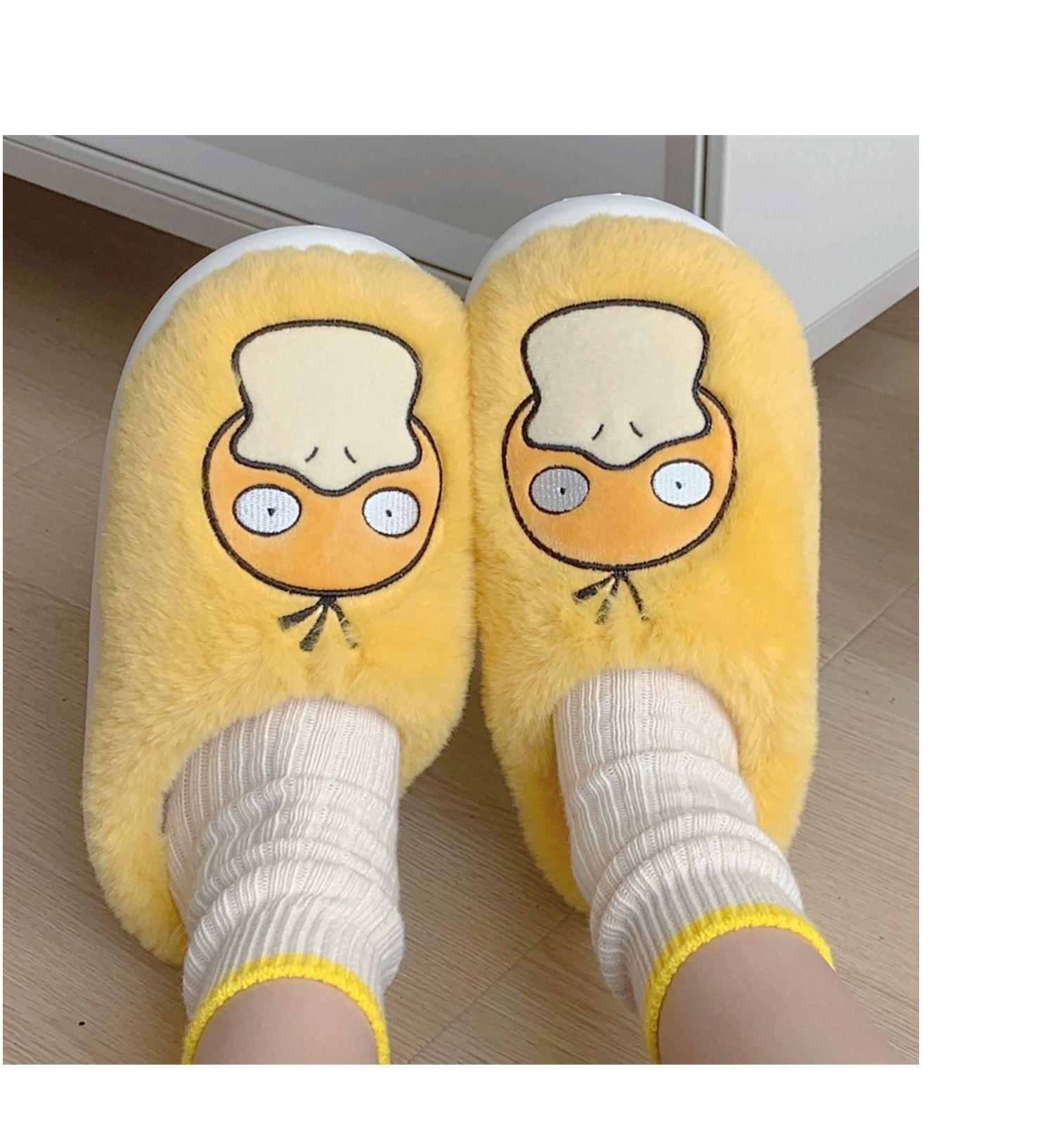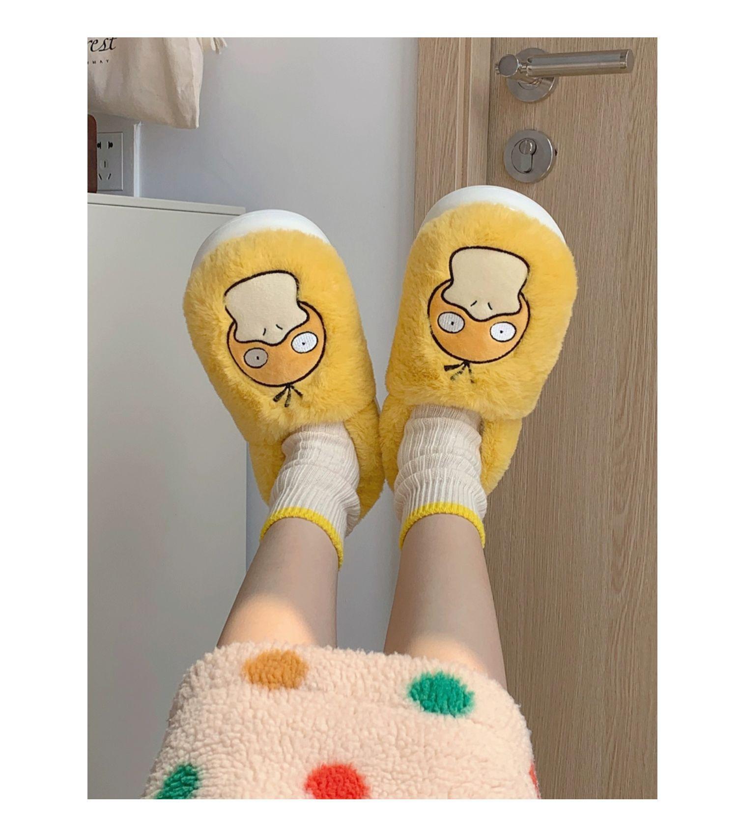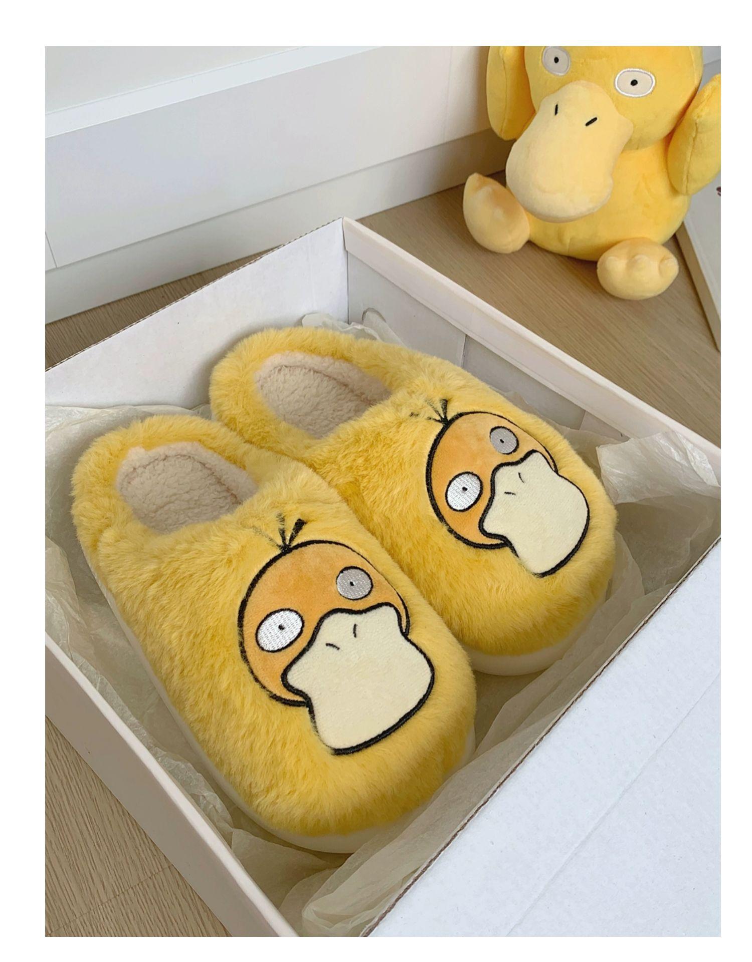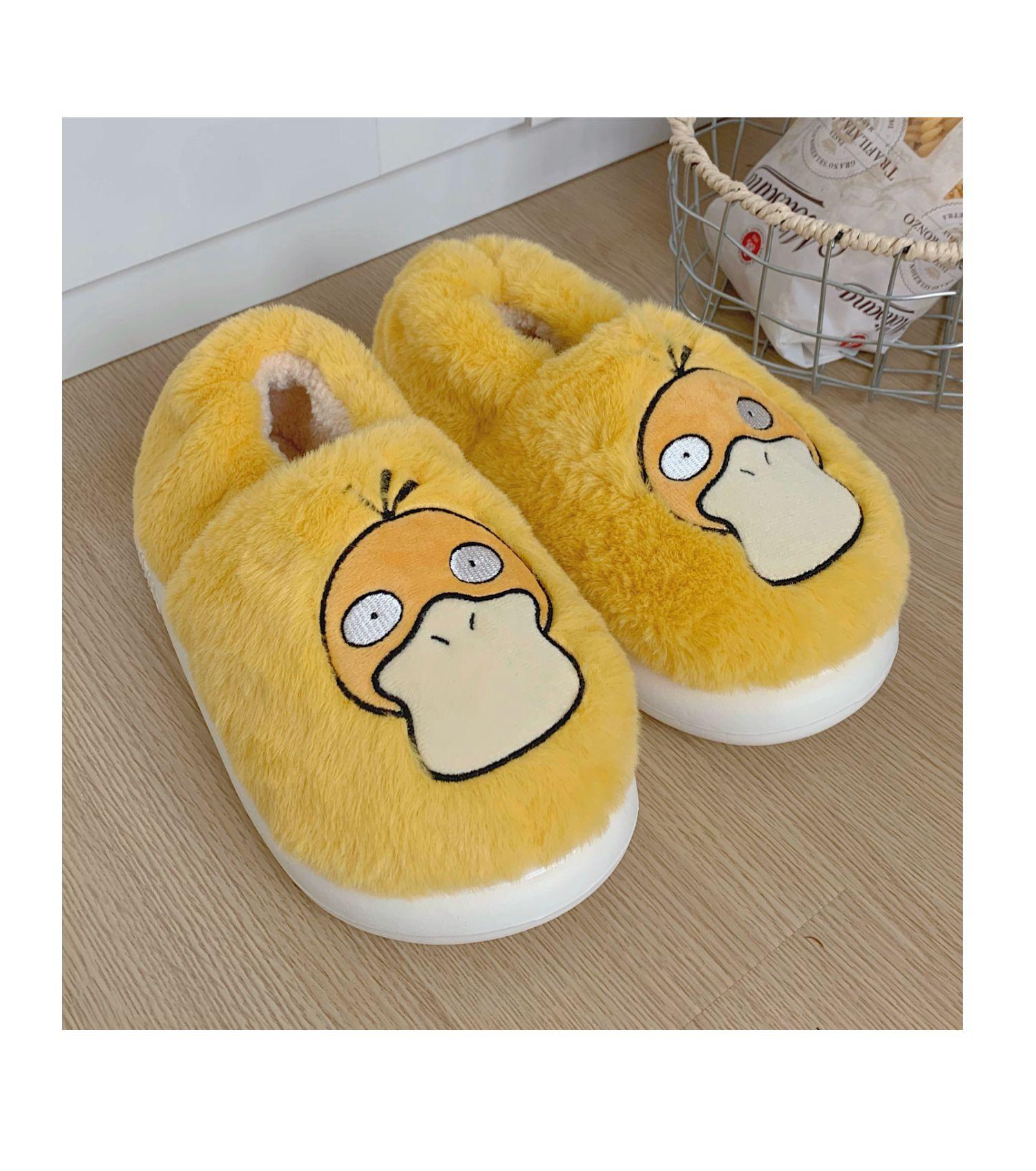 Zapatos de felpa cálidos de punta cerrada de pato Keaibao Kemeng Keda para estudiantes otoño e invierno para casa, zapatillas de algodón cómodas para interiores para mujer