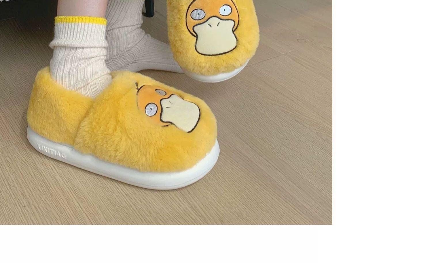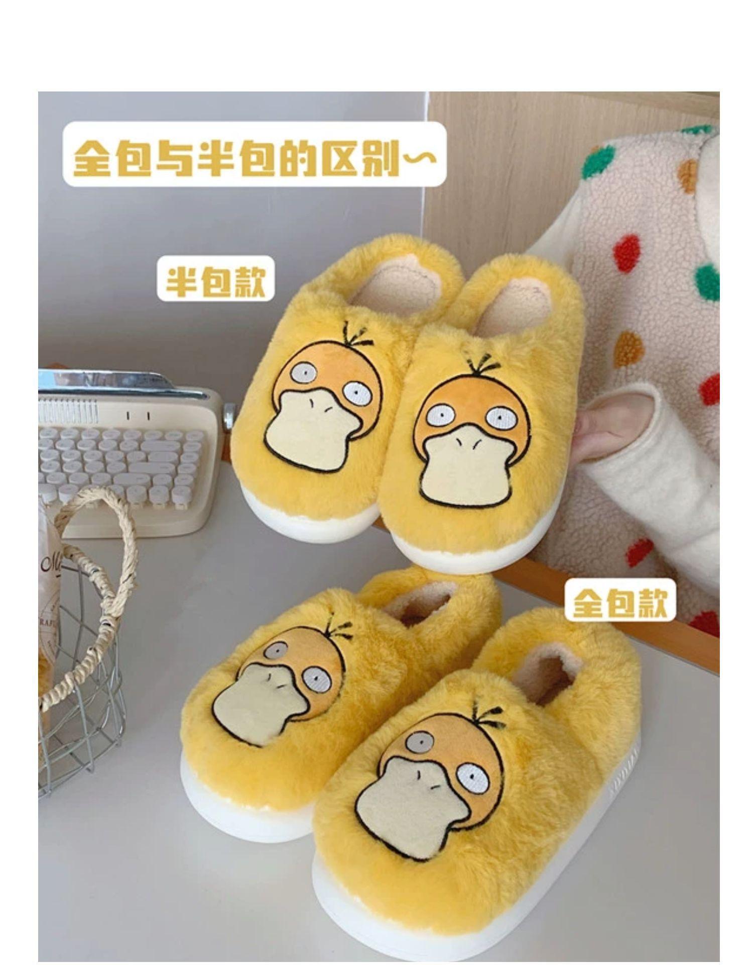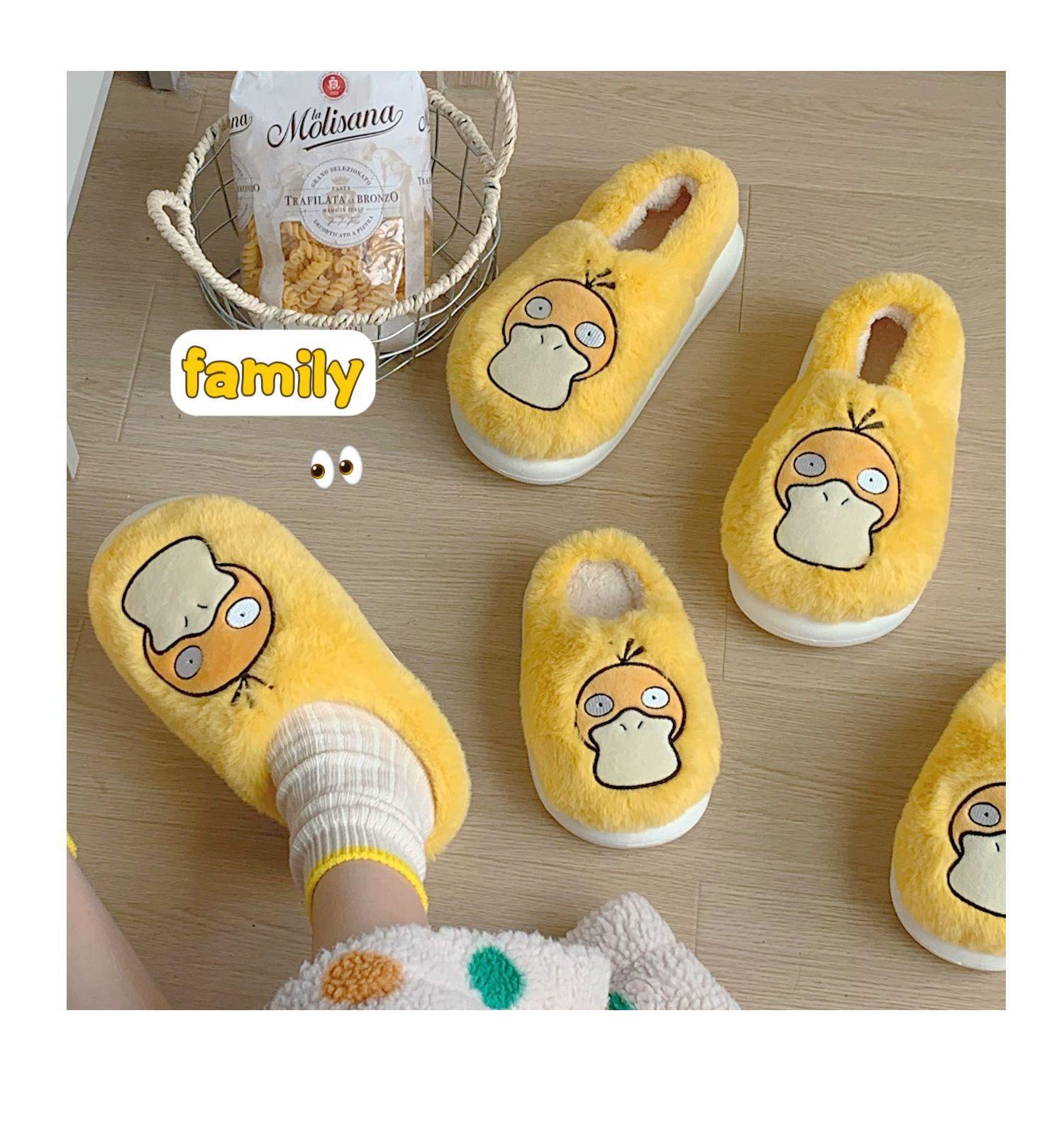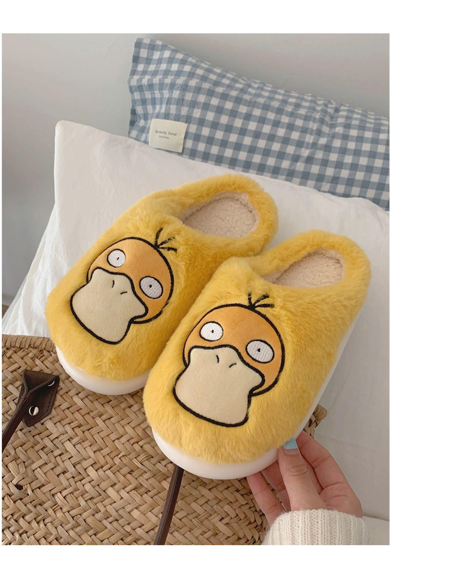 Zapatos de felpa cálidos de punta cerrada de pato Keaibao Kemeng Keda para estudiantes otoño e invierno para casa, zapatillas de algodón cómodas para interiores para mujer