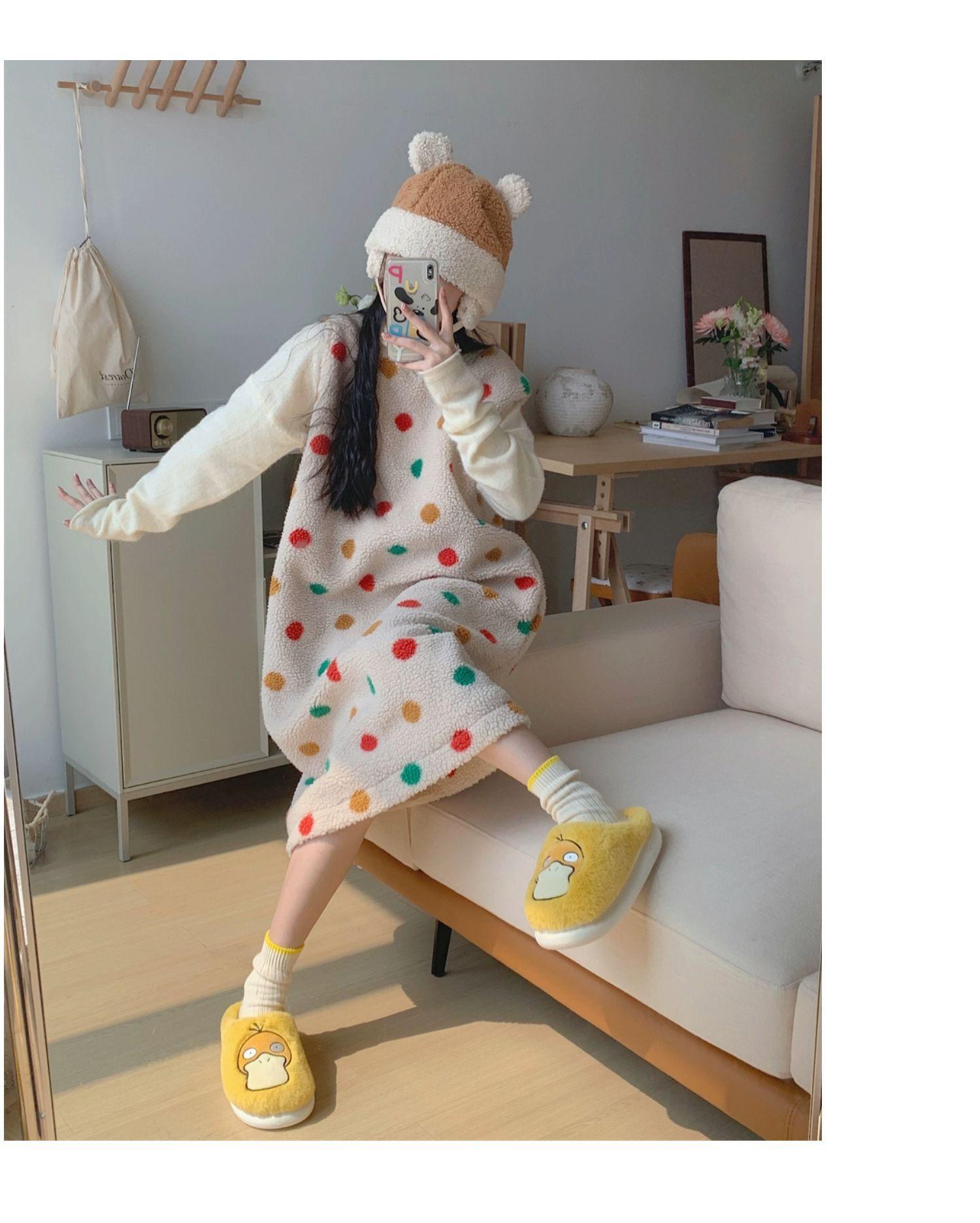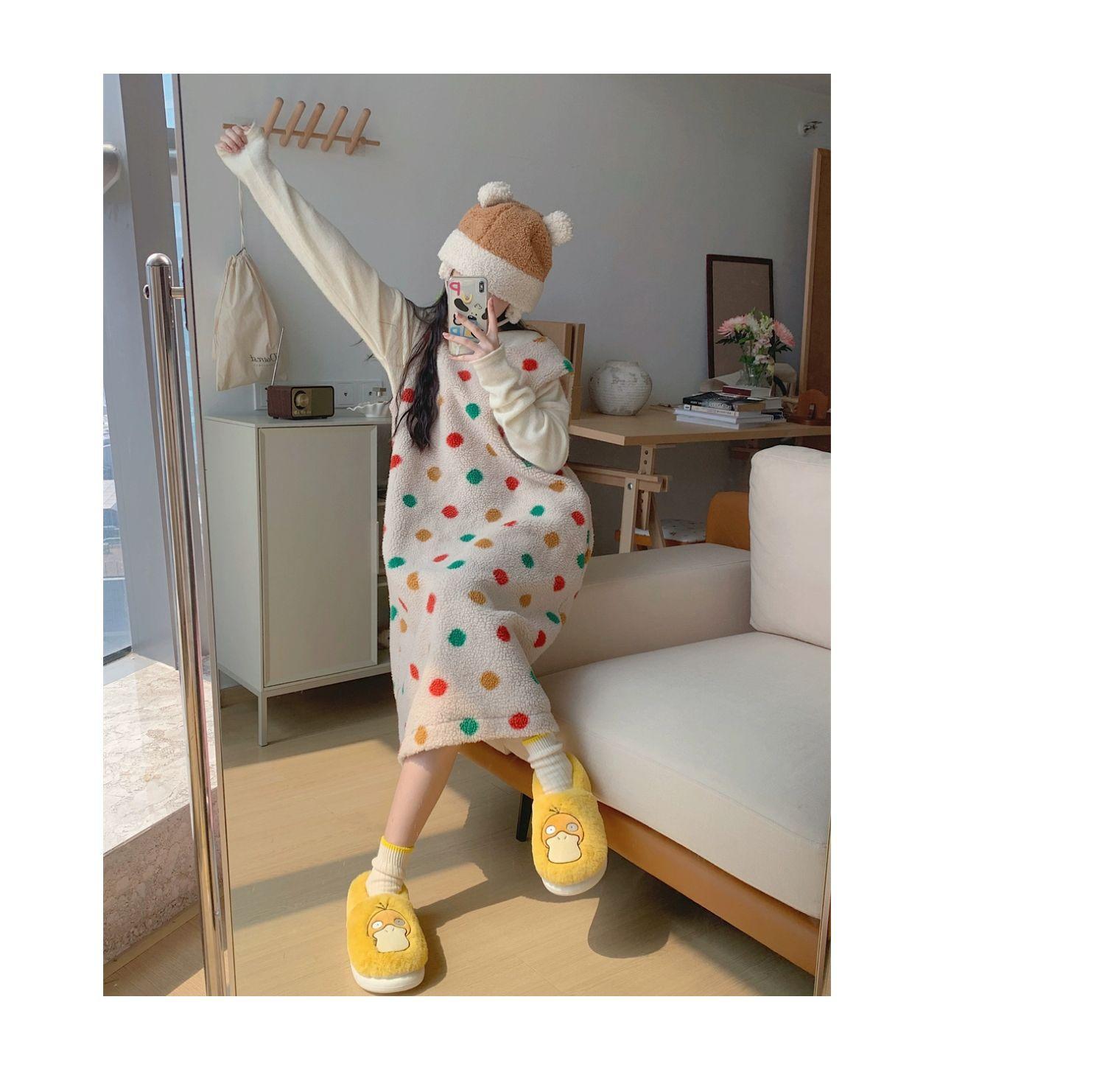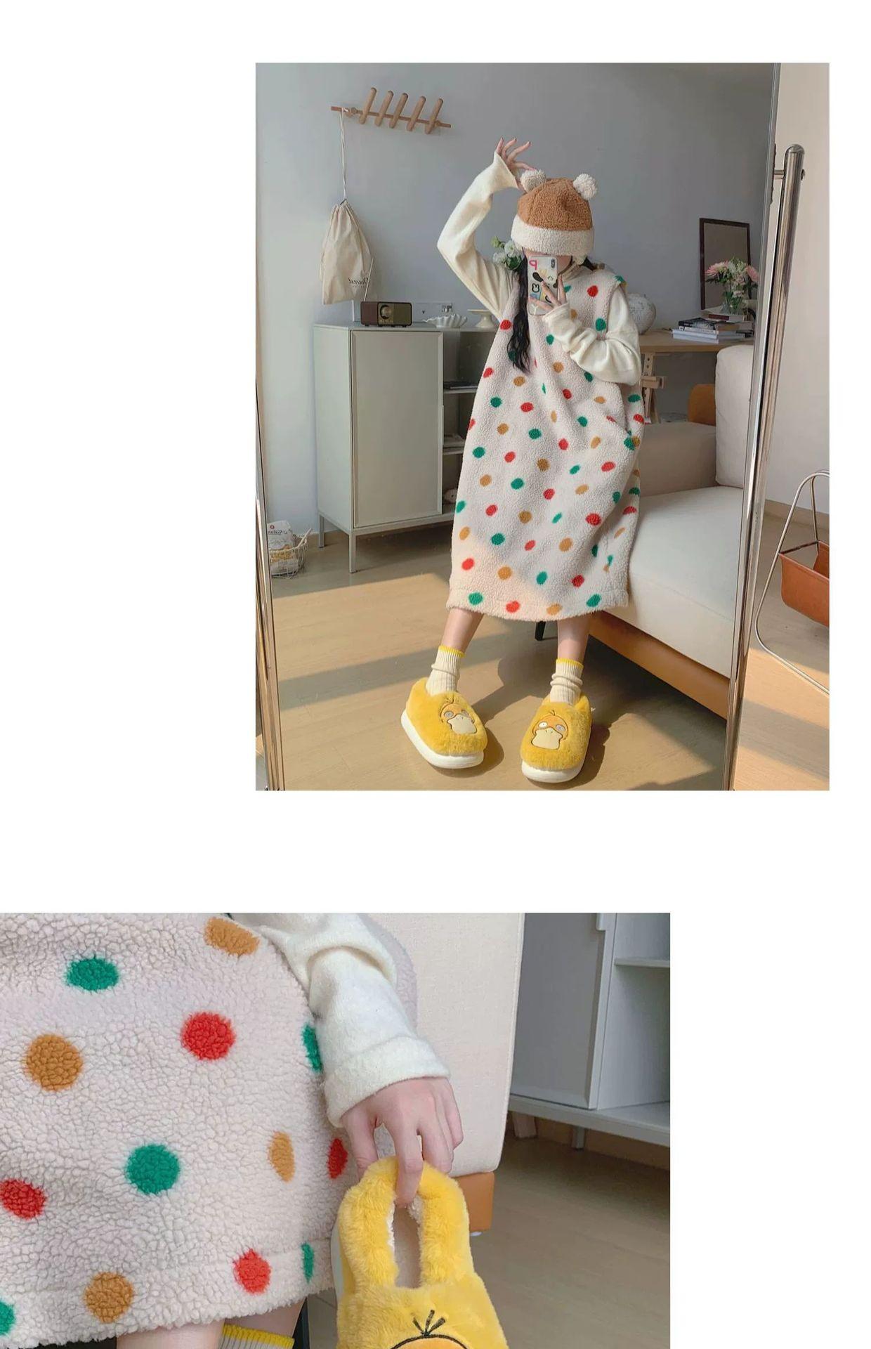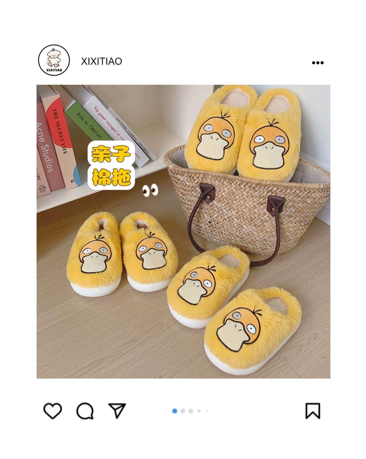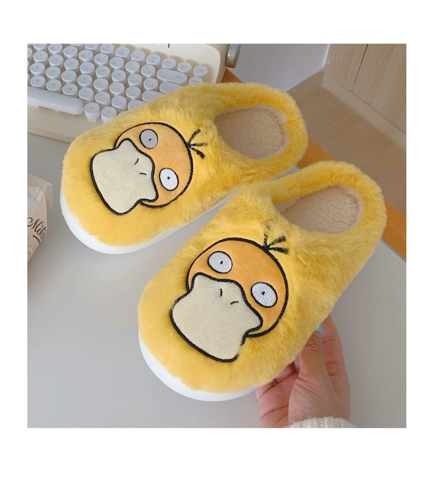 Zapatos de felpa cálidos de punta cerrada de pato Keaibao Kemeng Keda para estudiantes otoño e invierno para casa, zapatillas de algodón cómodas para interiores para mujer