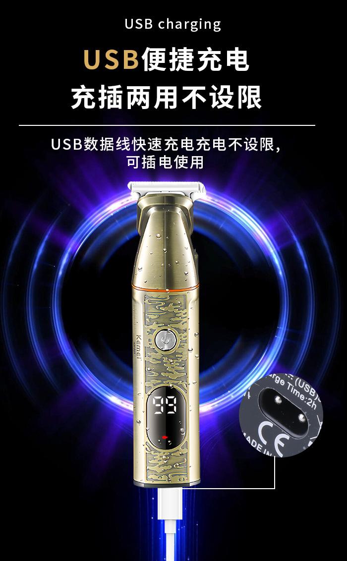 Kemei Cortadora de Pelo Eléctrica Profesional Recortadora de Cabello Pantalla Digital Cortadora Cabeza de Aceite Cortadora de Pelo para el Hogar Eléctrica USB