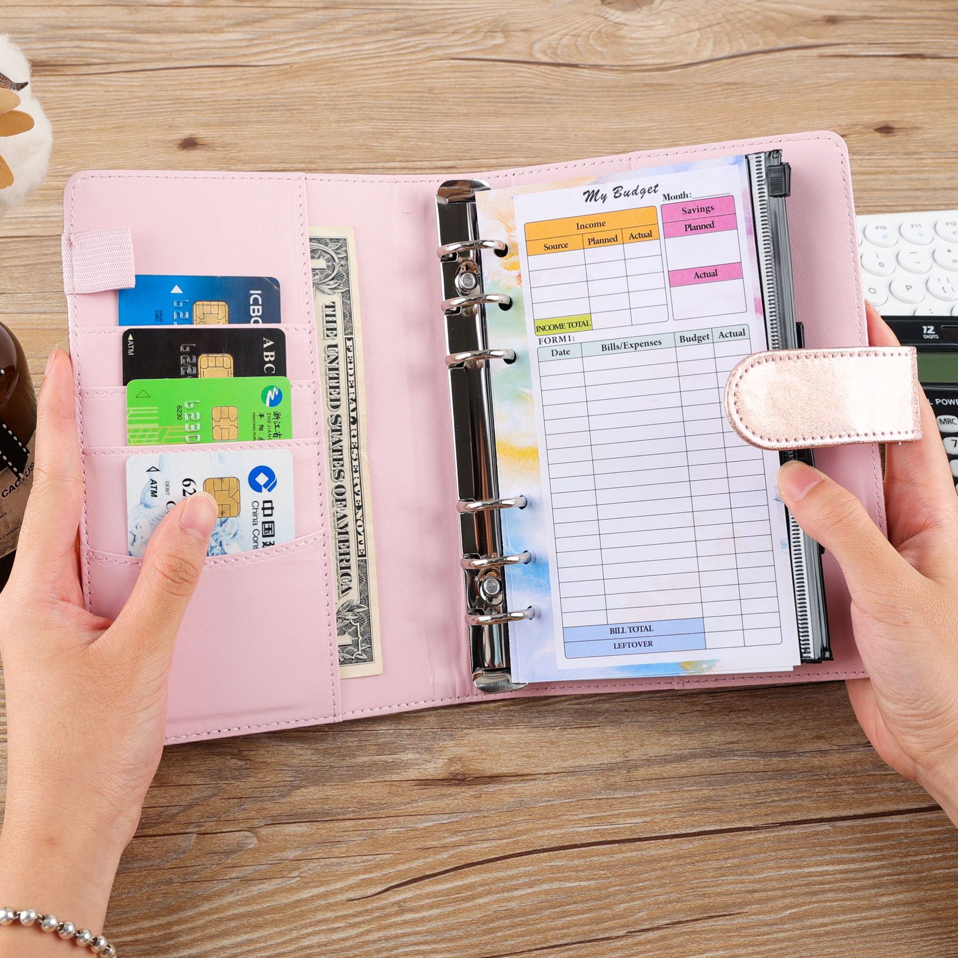 Cuaderno de contabilidad de hojas sueltas A6 con diseño de macarrones coloridos, especial para transfronterizos, manual creativo de planificación financiera y presupuesto de efectivo.