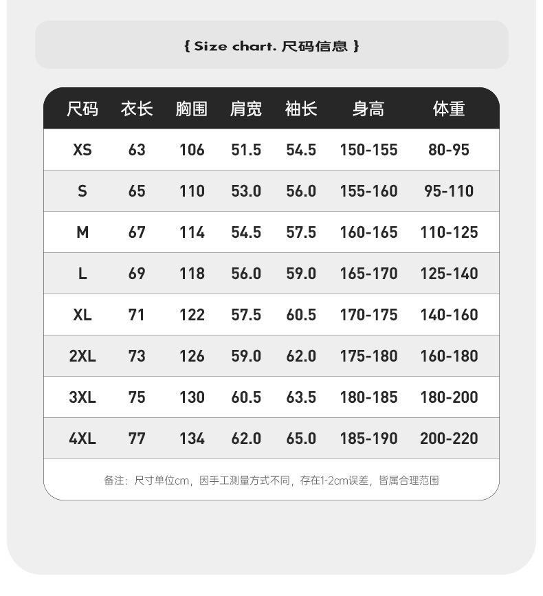 XS, S, M, L, XL, 2XL, 3XL, 4XL