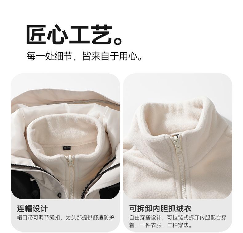 Traje de esquí de montaña tres en uno, desmontable, de dos piezas, impermeable, resistente al viento y cálido para el trabajo
