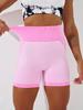 Pantalones de yoga ajustados y sexys de estilo europeo y americano, de alta elasticidad, color melocotón, para deportes y ocio, pantalones cortos de cintura alta de tres puntos para mujer.