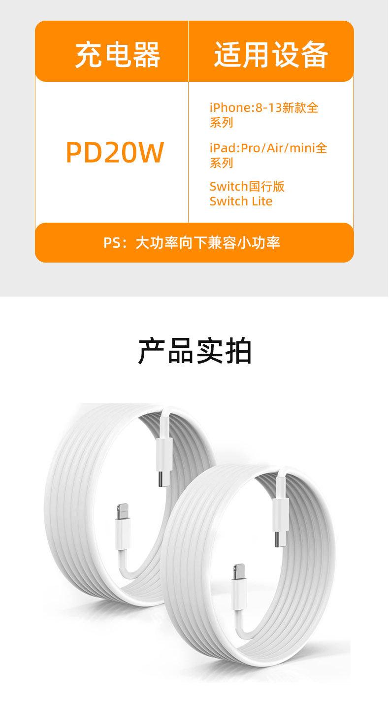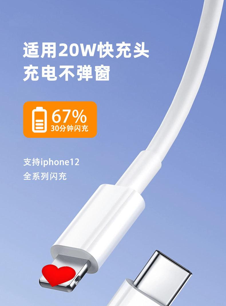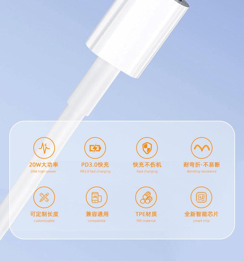 Cable de carga rápida PD de 20 W para iPhone, cable de datos tipo C para iPhone.