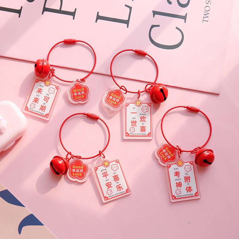 Compra Llavero acrílico creativo con texto de bendición de buena suerte, colgante para bolsa de pareja, accesorios, llavero para coche al por mayor al por mayor en Joom.pro