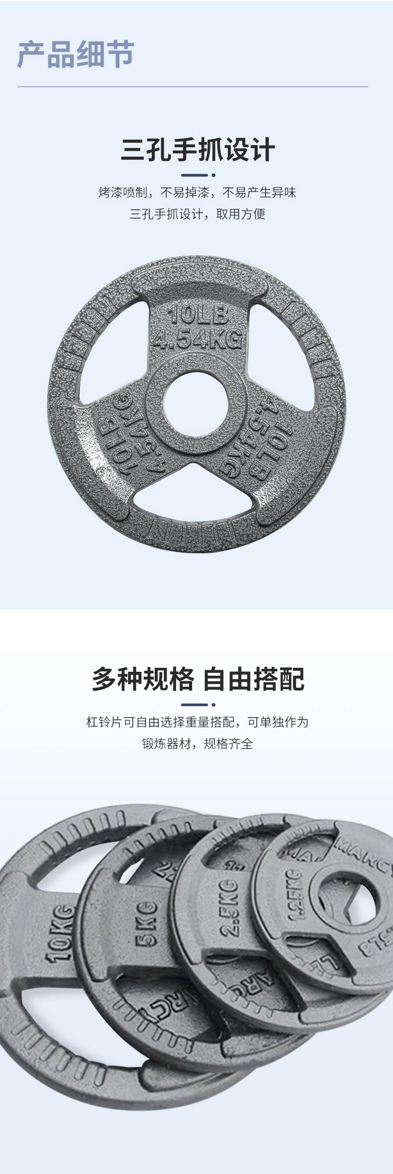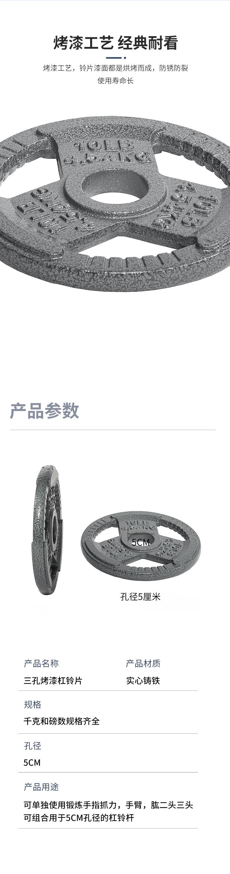 Pieza de barra con pintura de tres agujeros, pieza de mancuerna, pieza de barra, kg libras, pieza de levantamiento de pesas de hierro fundido puro, pintura de hierro puro gris