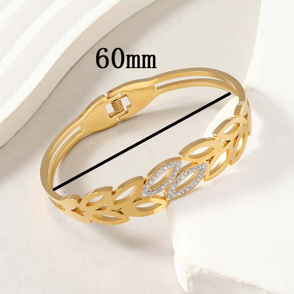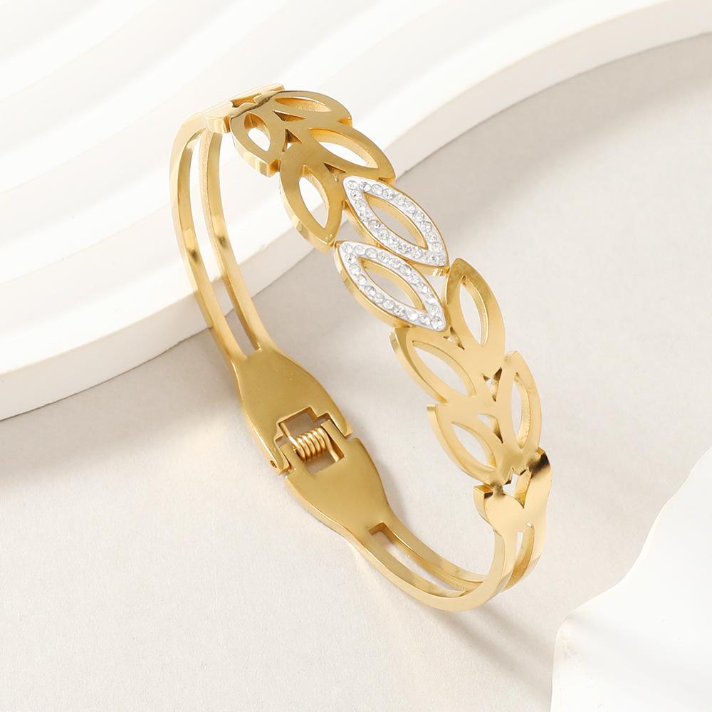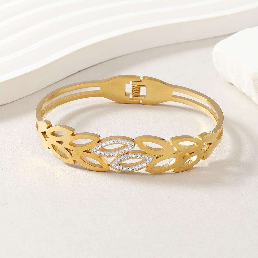 Nueva pulsera de acero inoxidable totalmente combinable transfronteriza Pulsera de acero de titanio con diamantes y hojas de espiga de trigo huecas de alta calidad de estilo europeo y americano