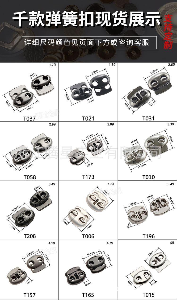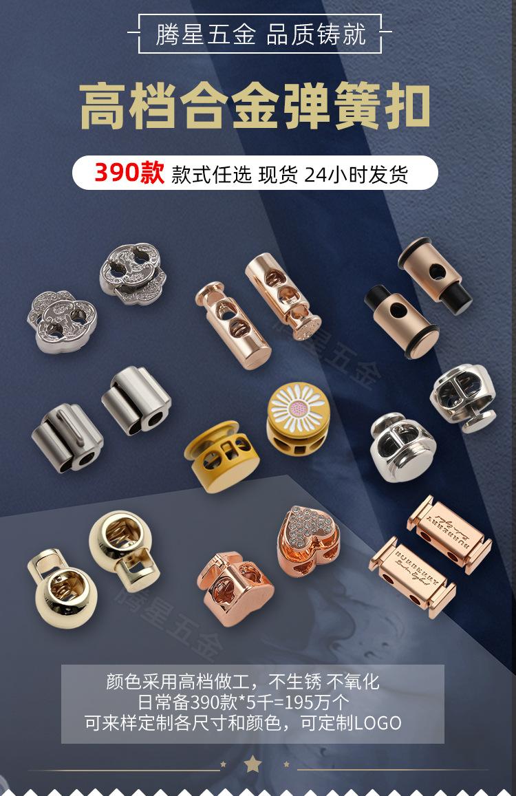 Hebilla de resorte de metal personalizada de fábrica Hebilla de cuerda elástica para ropa Hebilla de ajuste de banda elástica Hebilla de aleación colorida con forma especial