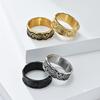 Suministro transfronterizo de joyería sencilla de acero inoxidable, anillo de titanio giratorio de doble oro y aceite negro, fabricantes para hombre