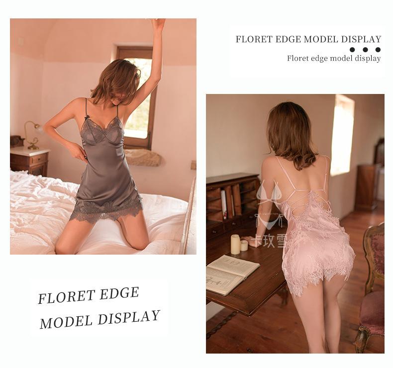 Compra Vestido de Camisón de Verano Sexy y Atractivo, Ropa de Dormir para Mujer de Seda de Hielo con Encaje, Tentación Pura y Dulce, Tirantes Espagueti 1459 al por mayor en Joom.pro