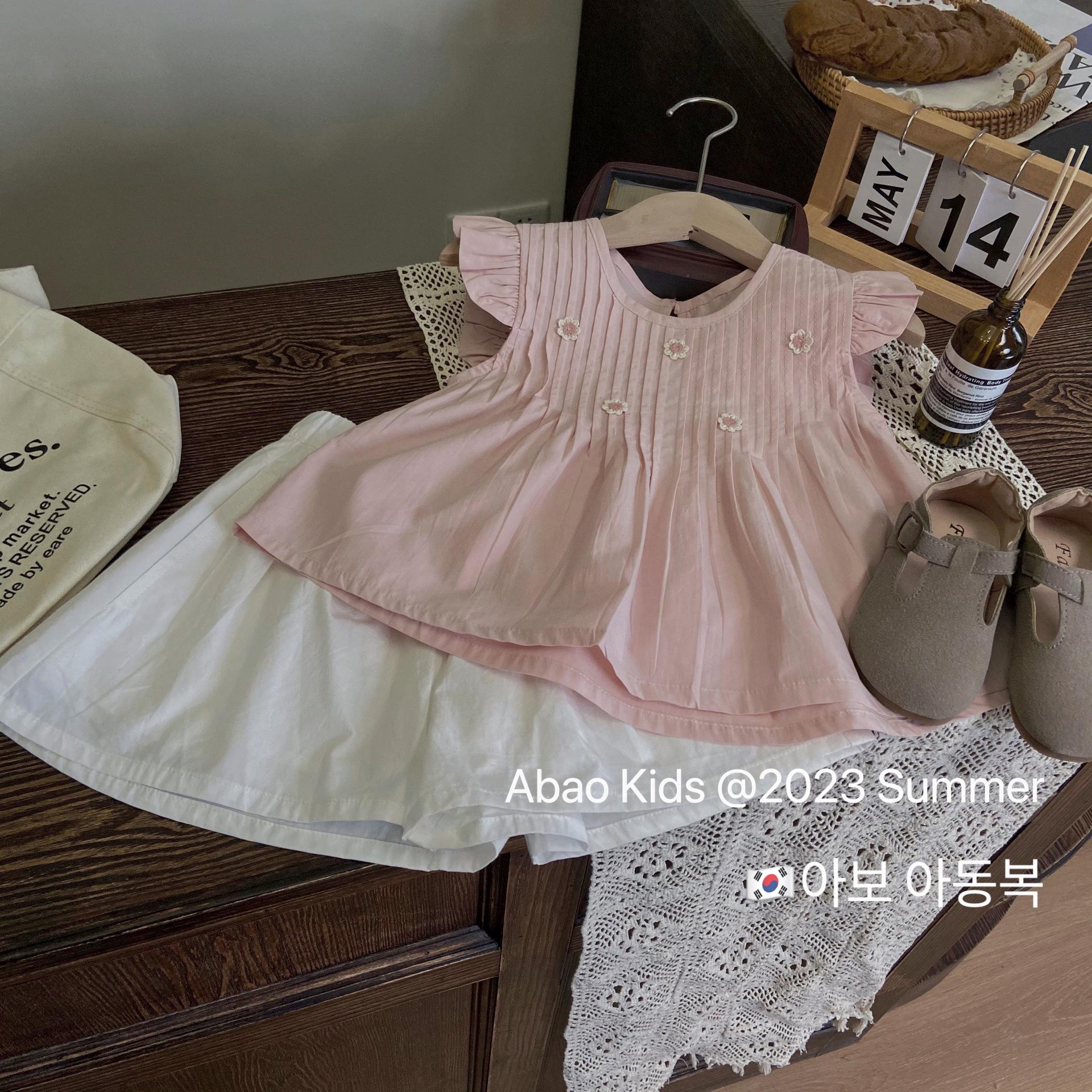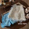 Liquidación Sin Devolución Sin Cambio [Pedido Racional] Verano Niñas Bordado Manga Volada Camisa de Muñeca Shorts Blancos