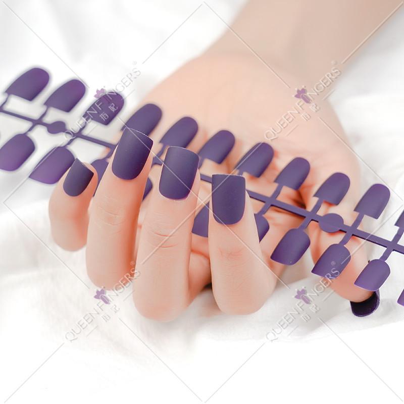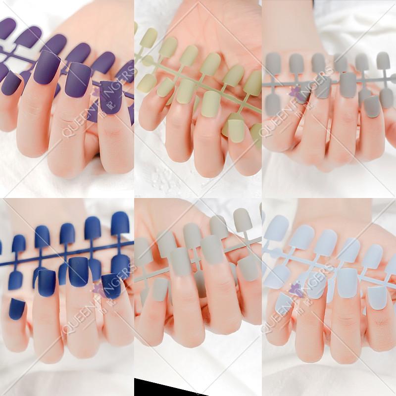 Nombre del producto: 24 piezas de arte de uñas terminado, parches de arte de uñas removibles DIY de color sólido, uñas postizas esmeriladas largas cuadradas en forma de gota