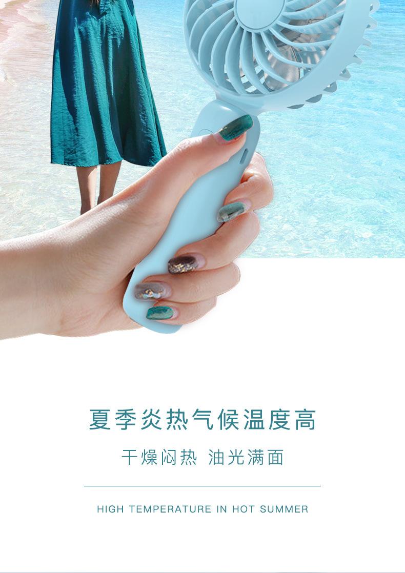 Ventilador de mano de venta directa de fábrica, mini ventilador eléctrico portátil USB, ventilador de escritorio de sobremesa con base, stock claro