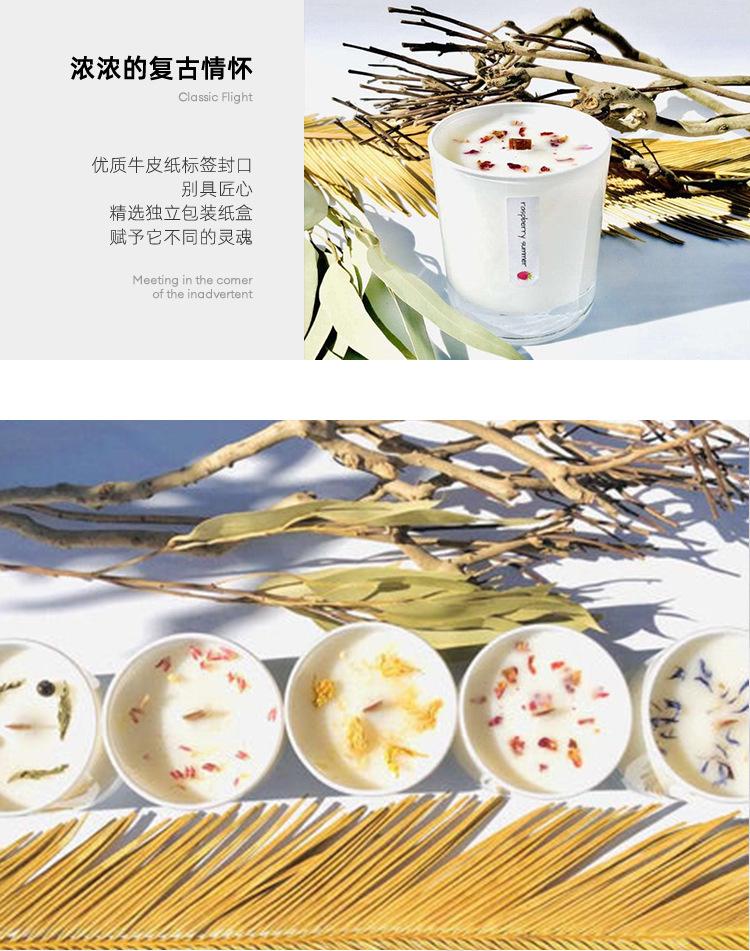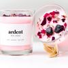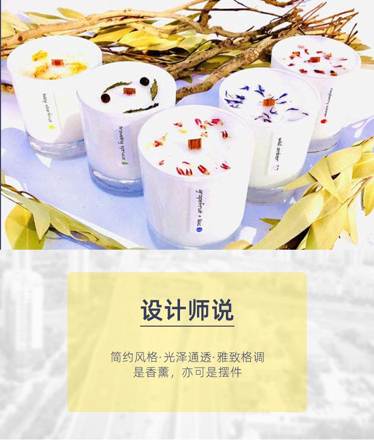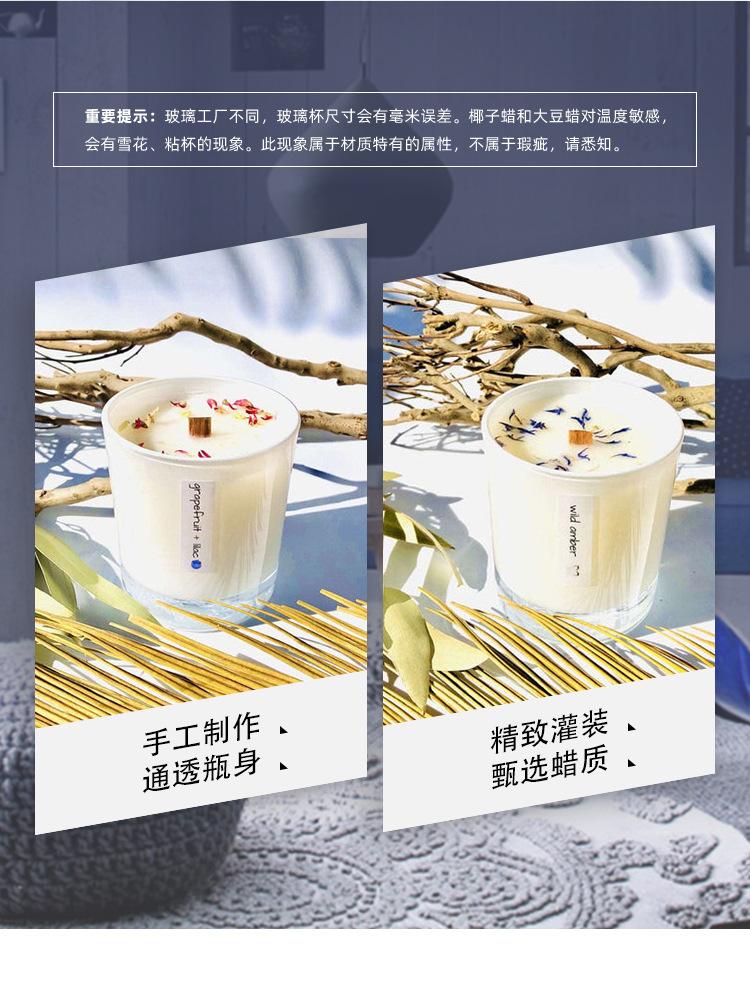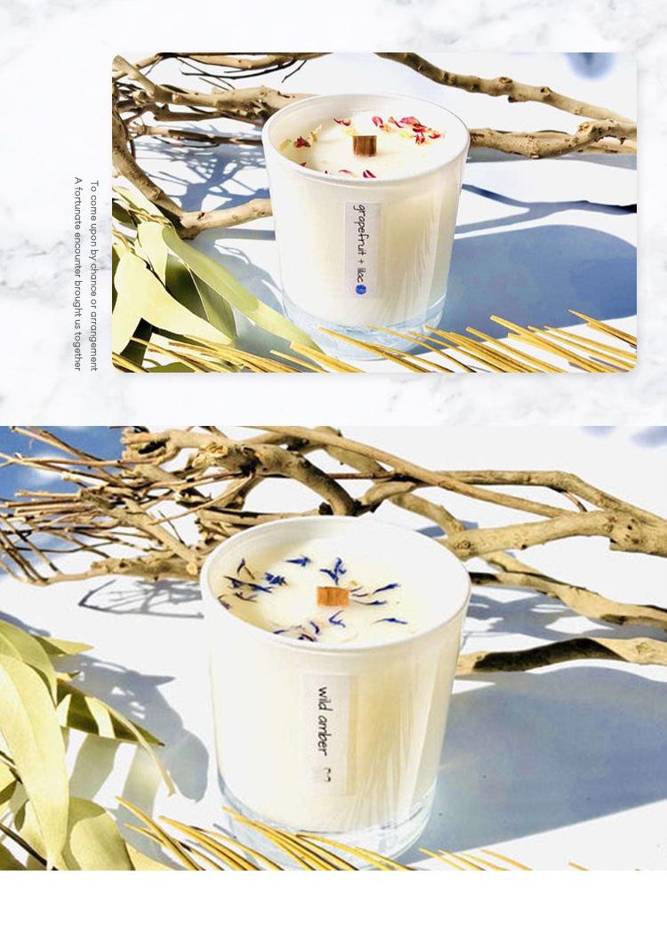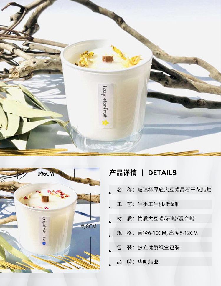 Vela perfumada de cera de soja para dormitorio, hecha a mano, con núcleo de madera, flores secas y piedra de cristal.