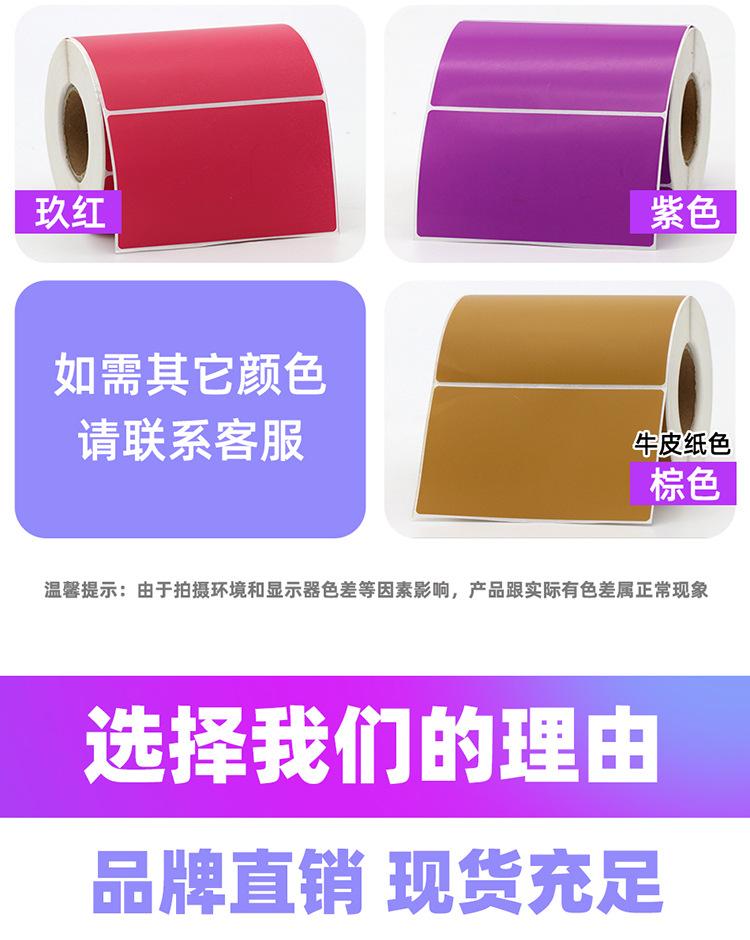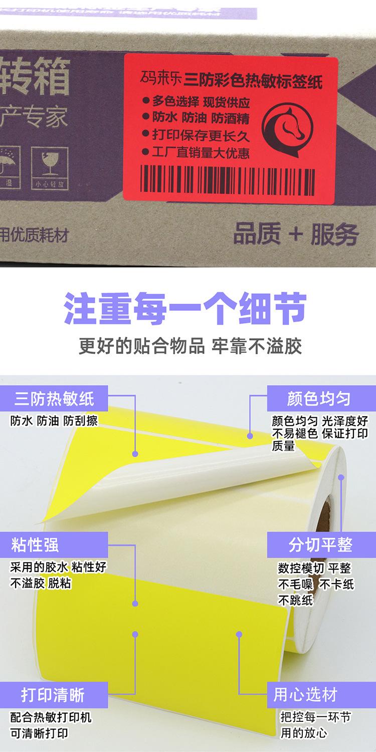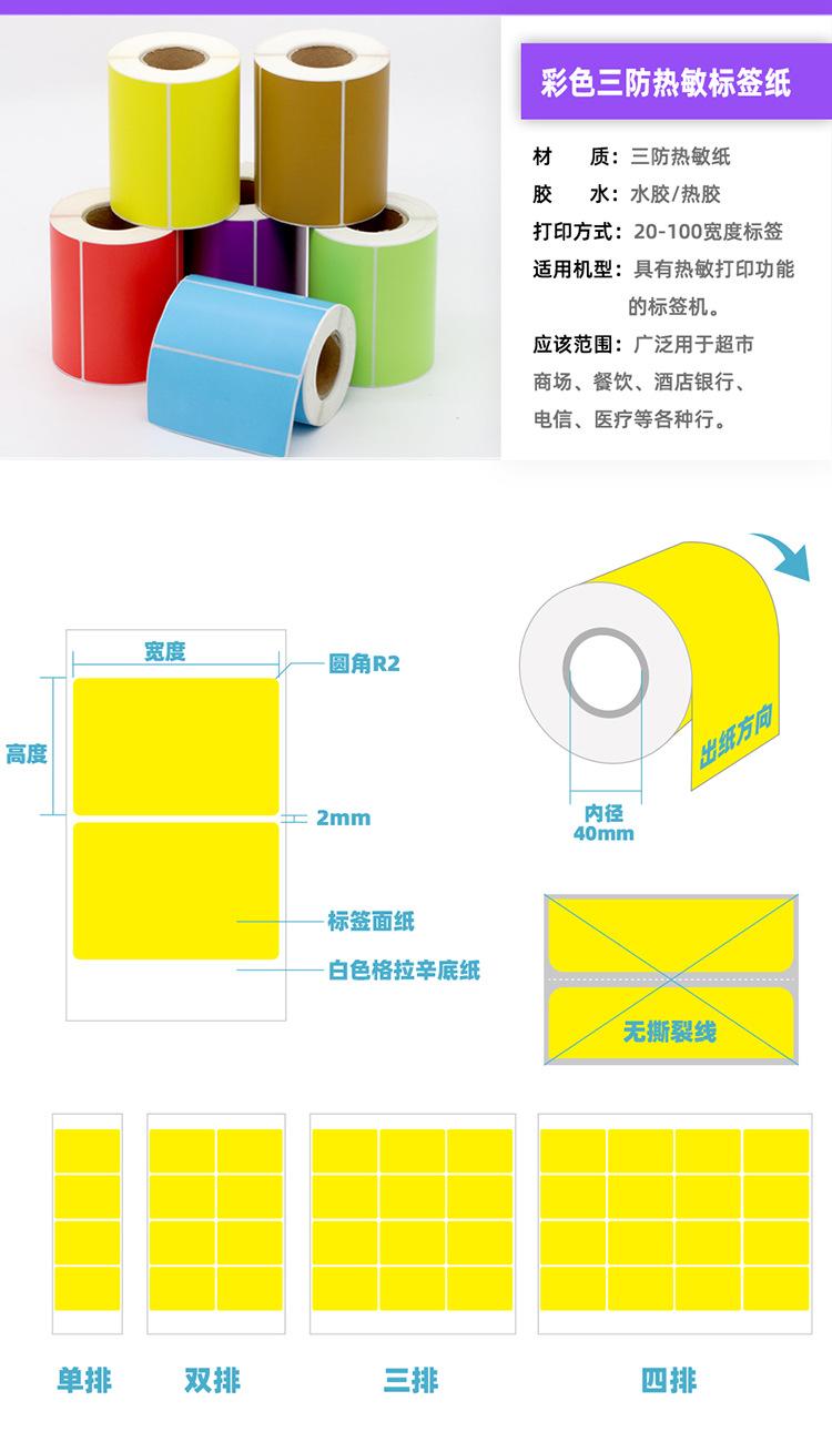 Papel de impresión térmica de tres colores 40506080100 Etiqueta adhesiva térmica Impresión de etiquetas de código de barras