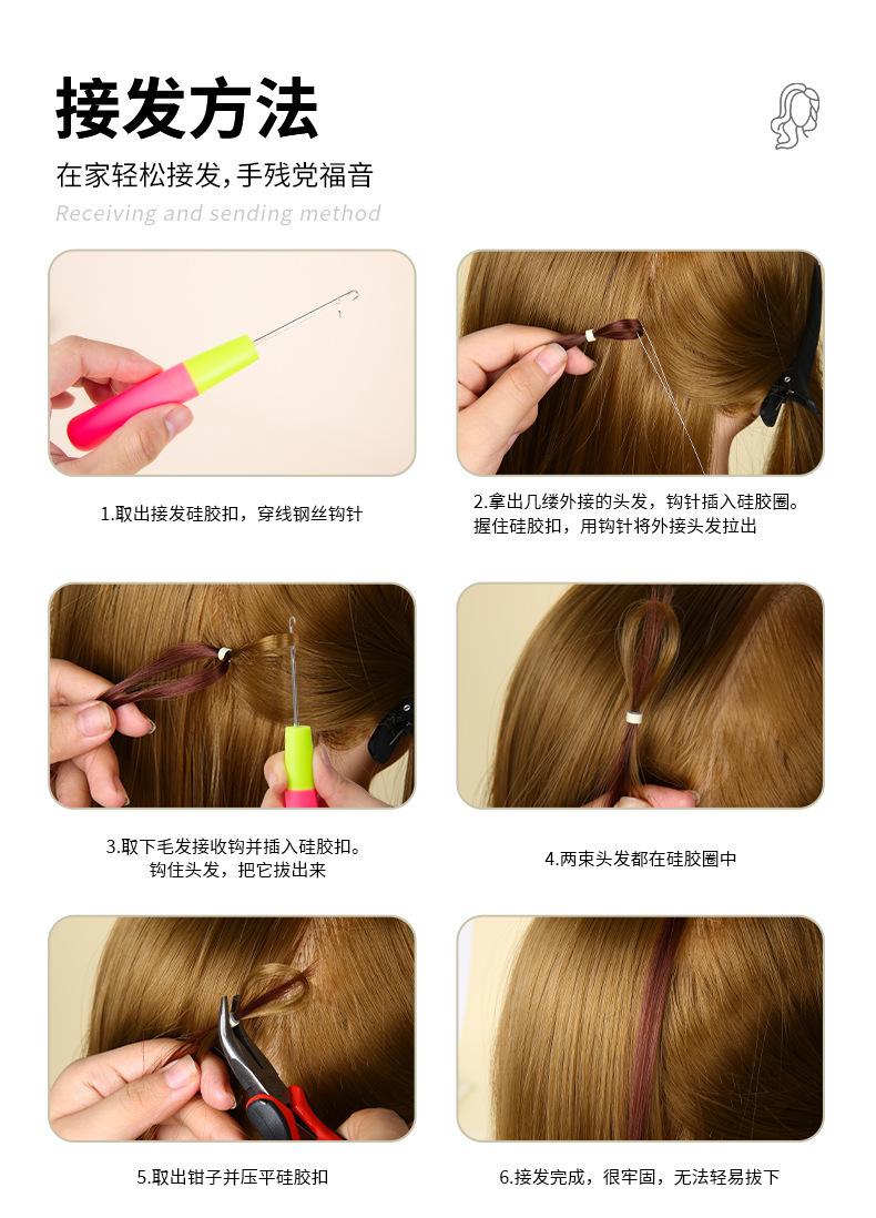 Enhebrador de agujas de crochet de platino, tejido a mano, nuevo dispositivo de fábrica para hacer extensiones de cabello, peluca con punta de plomo voladora y lengüeta.