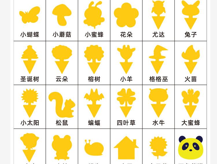 Butterfly, Sunflower, Tulip, Radish, Bird, Cat, Angel, Bee, Long ears dog, Fat ears dog, Big ears dog, Little ...