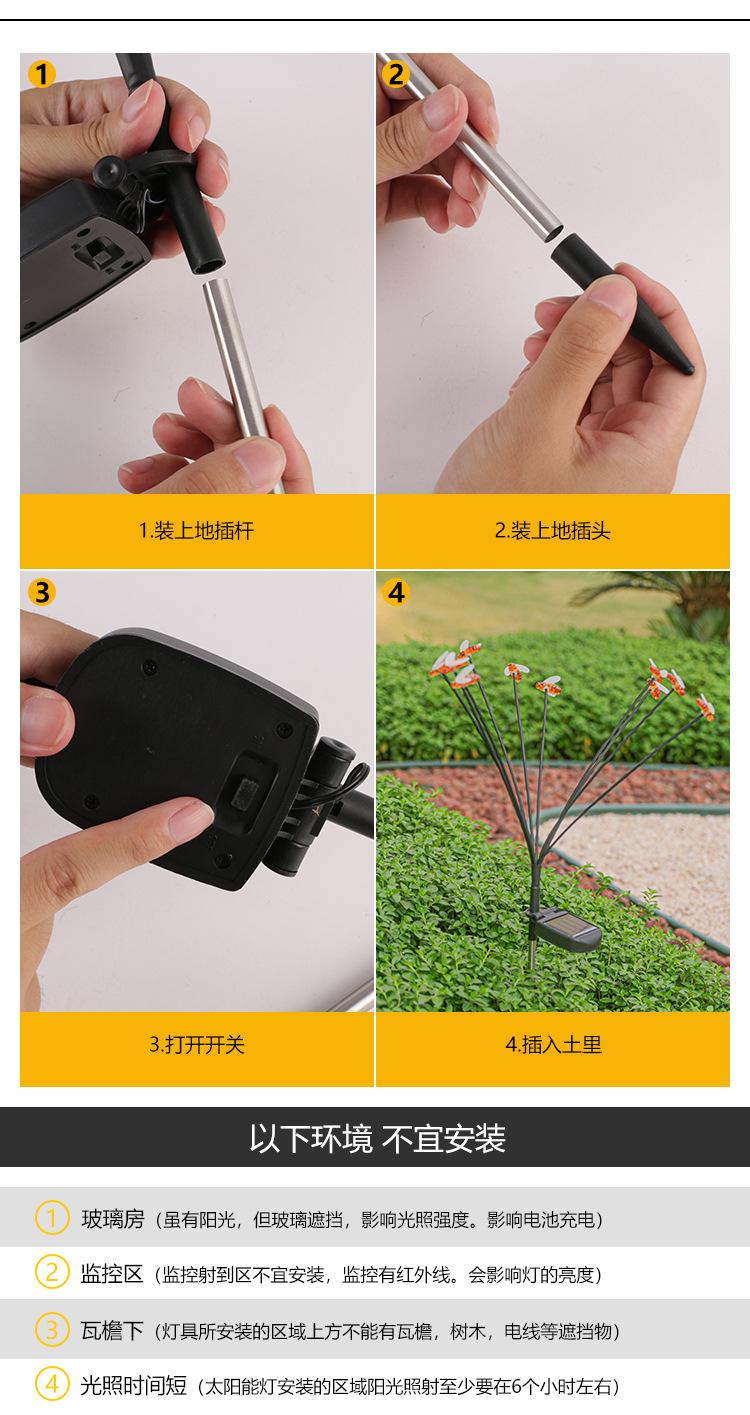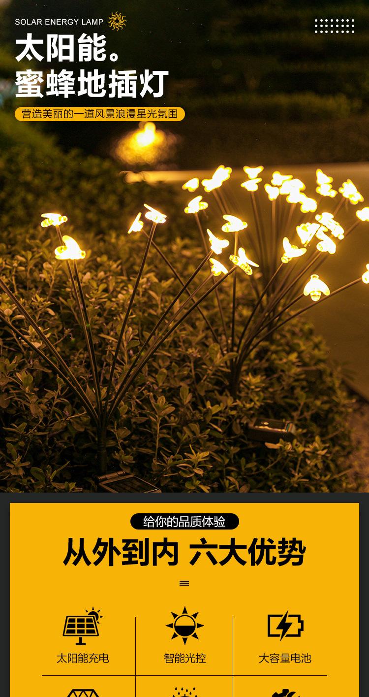 Lámpara solar de césped para exteriores, lámpara de jardín para el hogar, impermeable, jardín, balcón, patio, paisaje, abeja, animal, lámpara de suelo