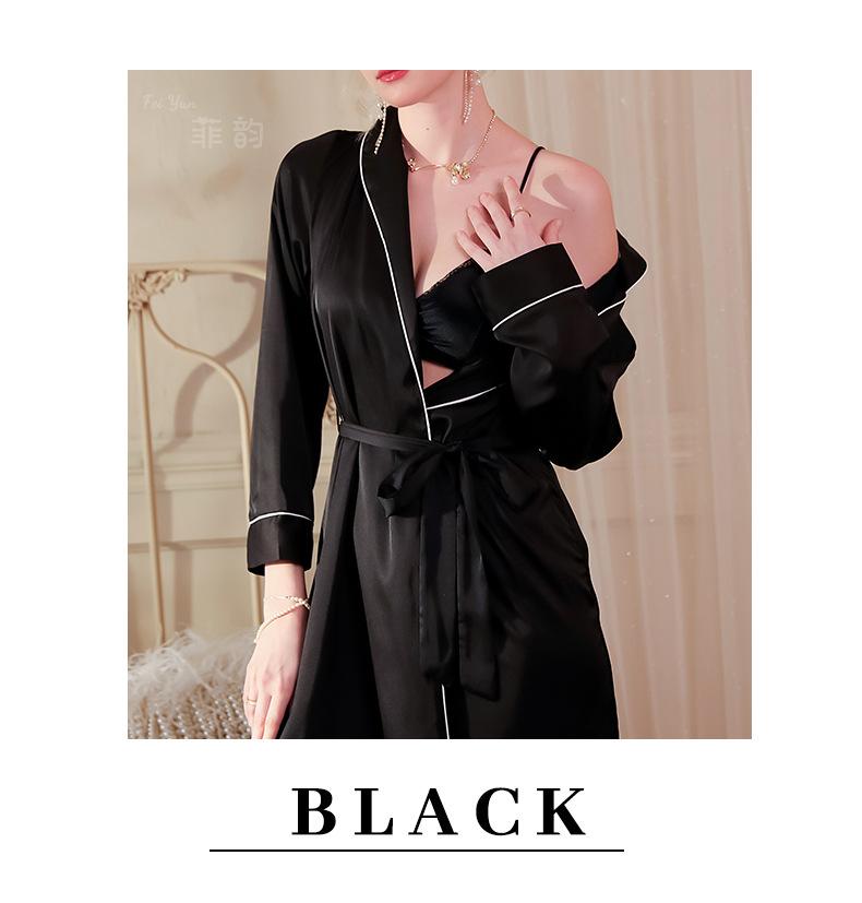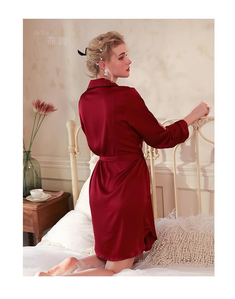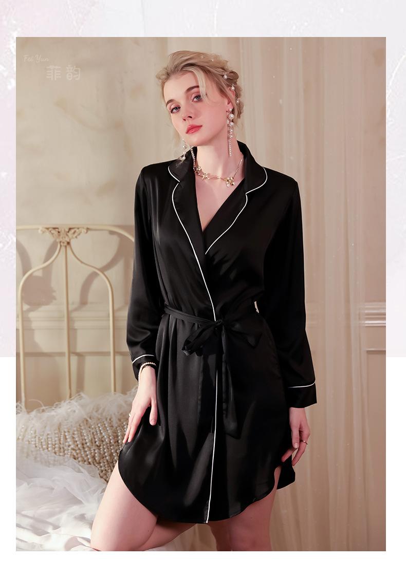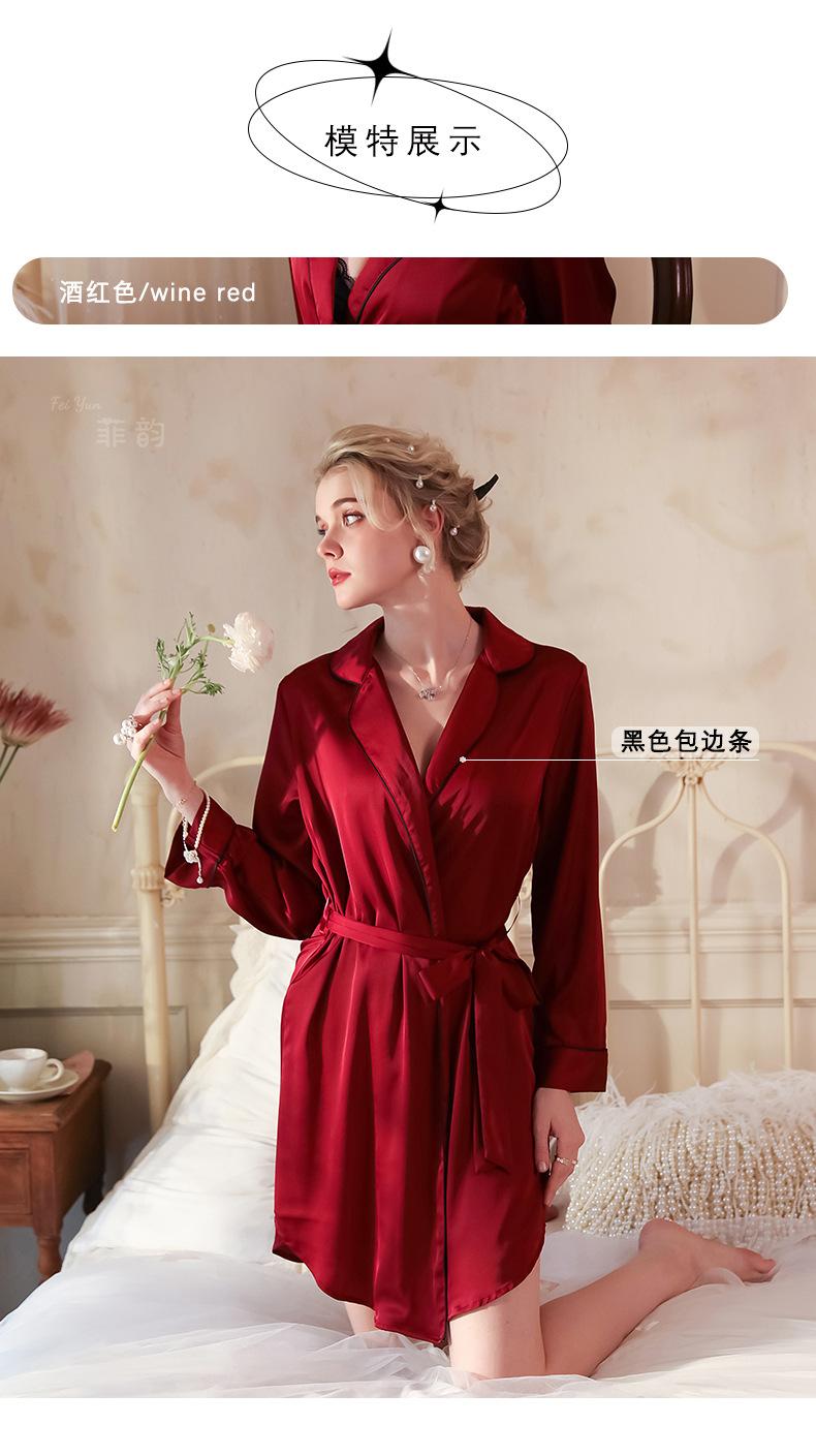 Feiyun Bata Sexy de Seda Imitación Pijama Femenino Sexy Cárdigan Bata de Noche de Hotel Albornoz Ropa de Casa al por Mayor 525