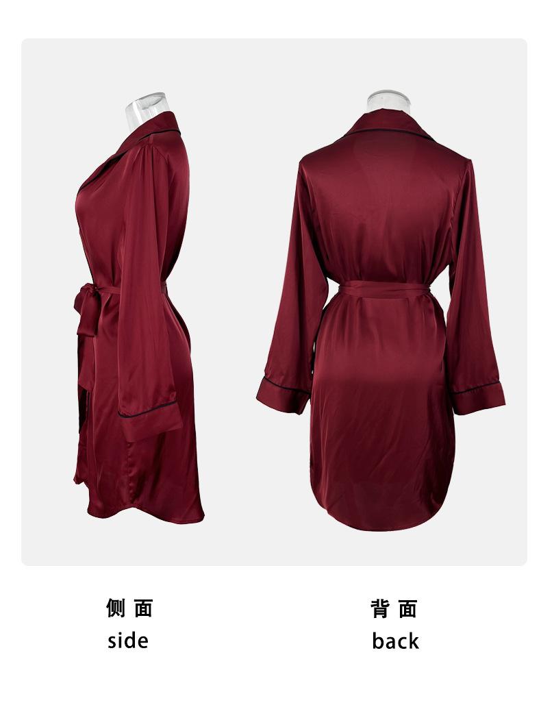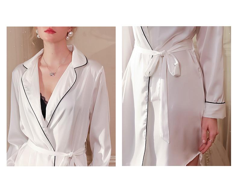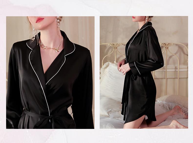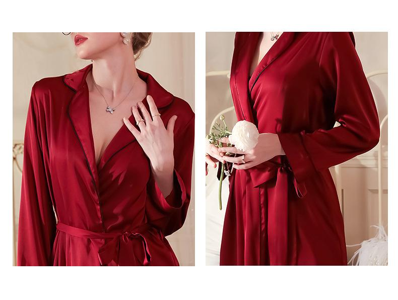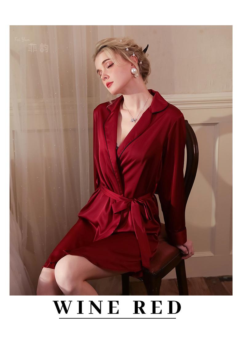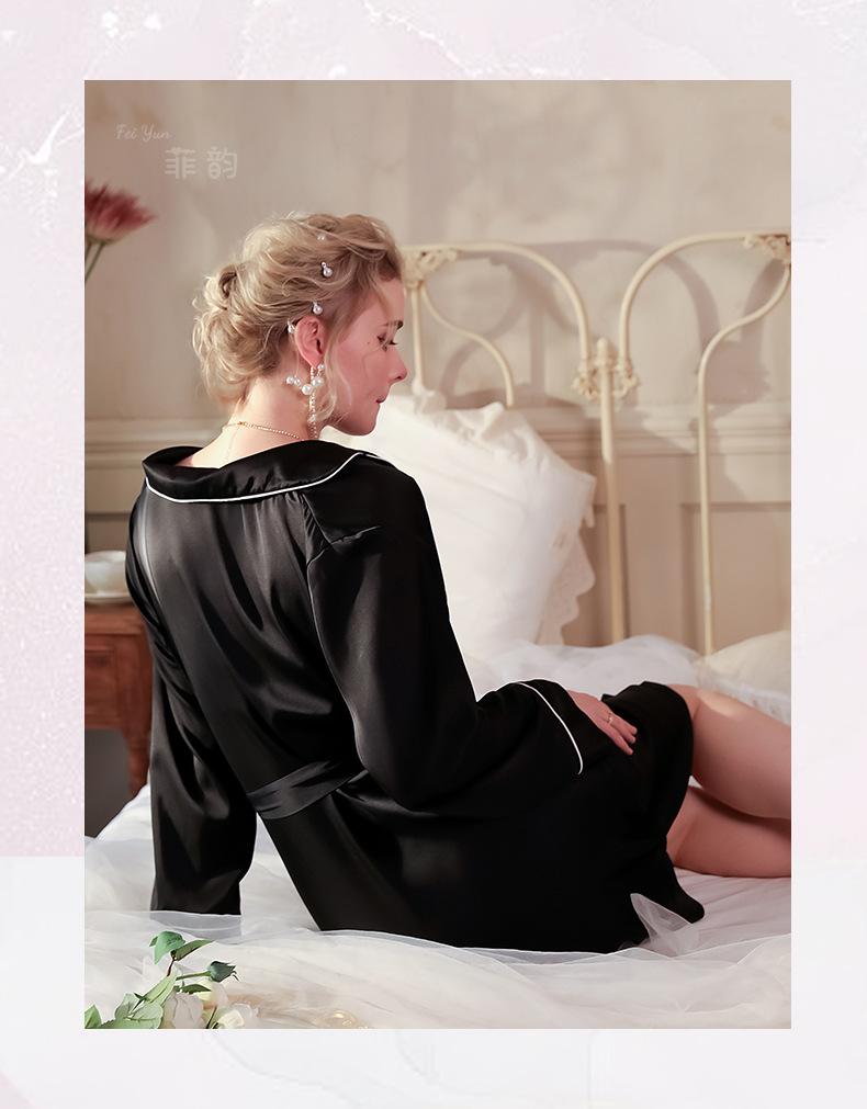 Feiyun Bata Sexy de Seda Imitación Pijama Femenino Sexy Cárdigan Bata de Noche de Hotel Albornoz Ropa de Casa al por Mayor 525